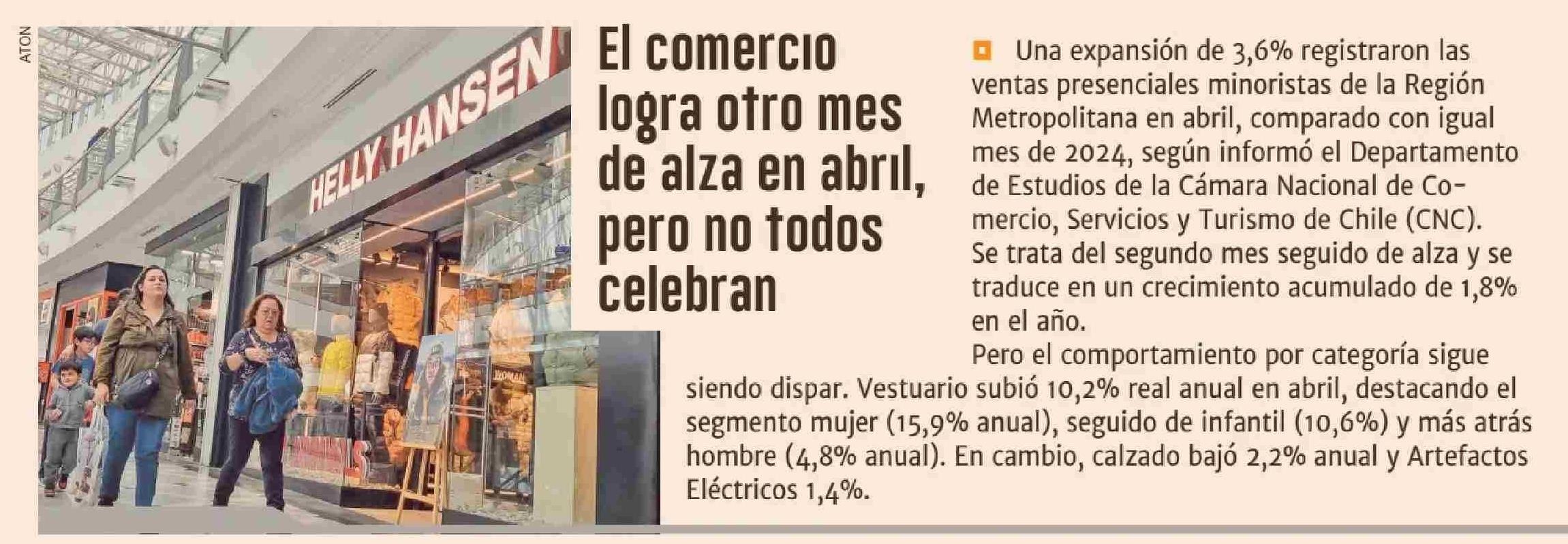 El comercio logra otro mes de alza en abril, pero no todos celebran 29-05-2025 Diario Financiero |