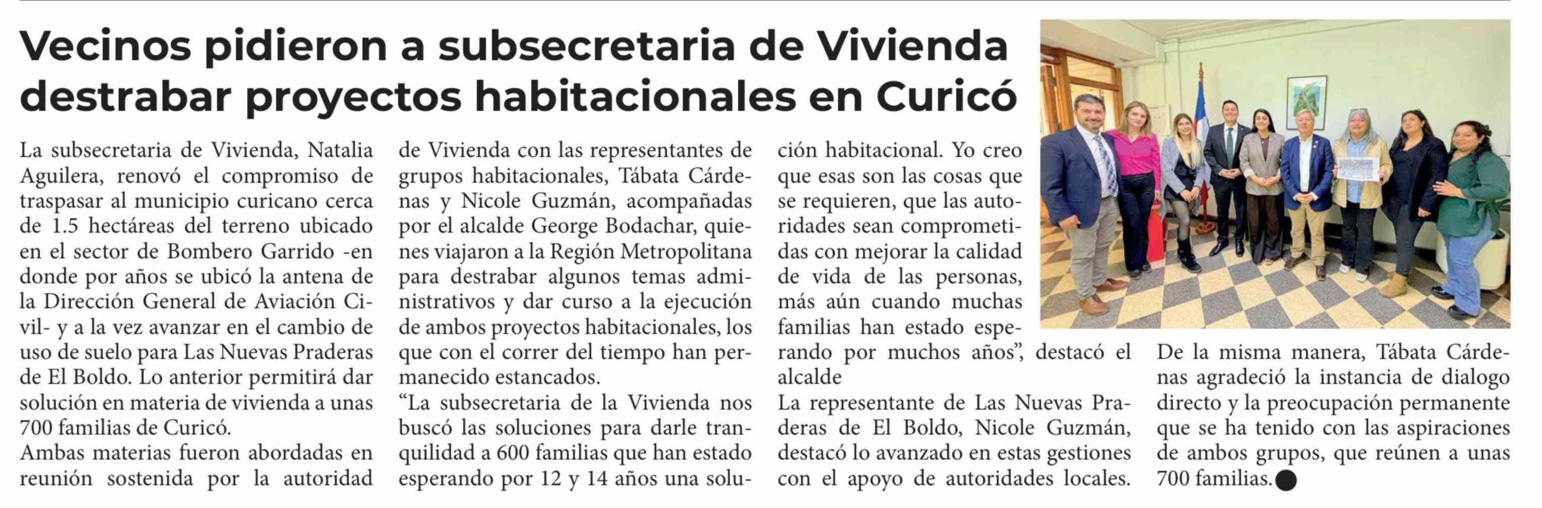 Título: Vecinos pidieron a subsecretaria de Vivienda destrabar proyectos habitacionales en Curicó