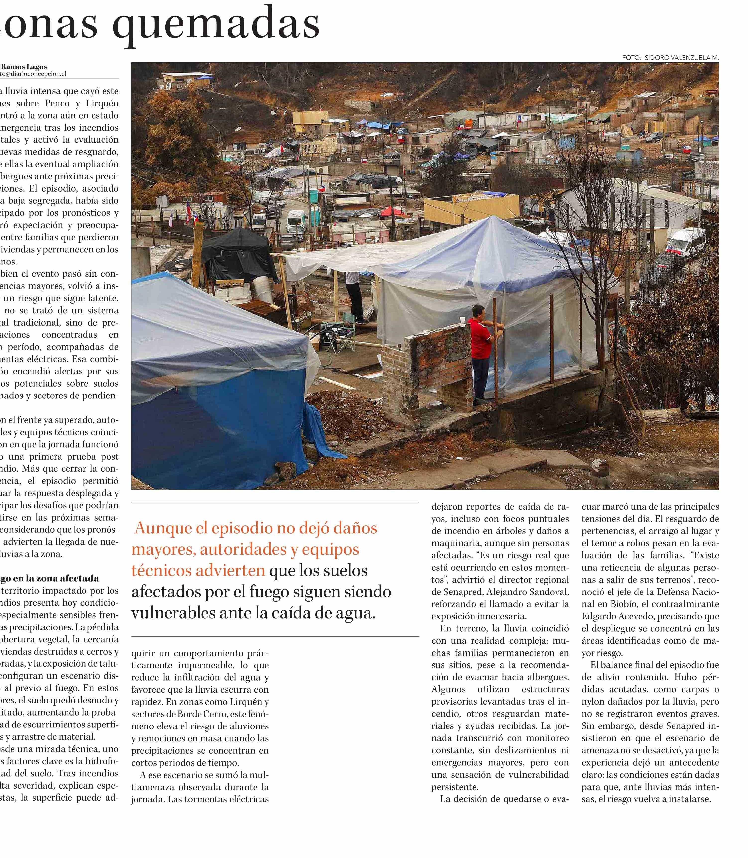 Título: Penco: evalúan ampliación de albergues ante próximas lluvias en zonas quemadas