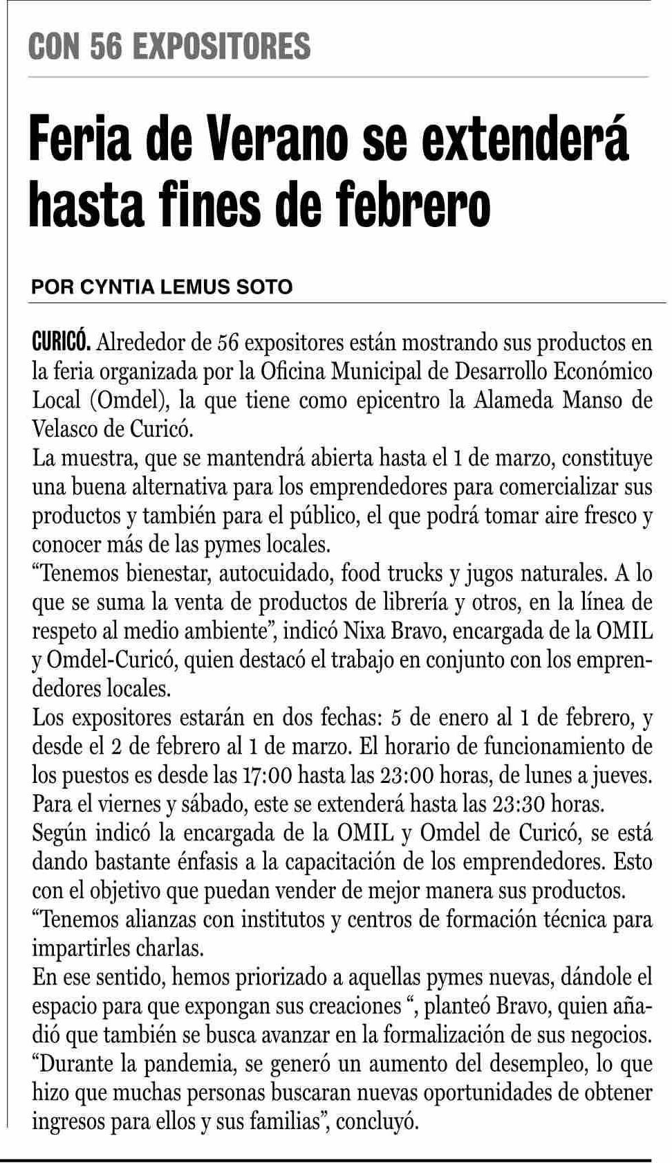 Título: Feria de Verano se extenderá hasta fines de febrero