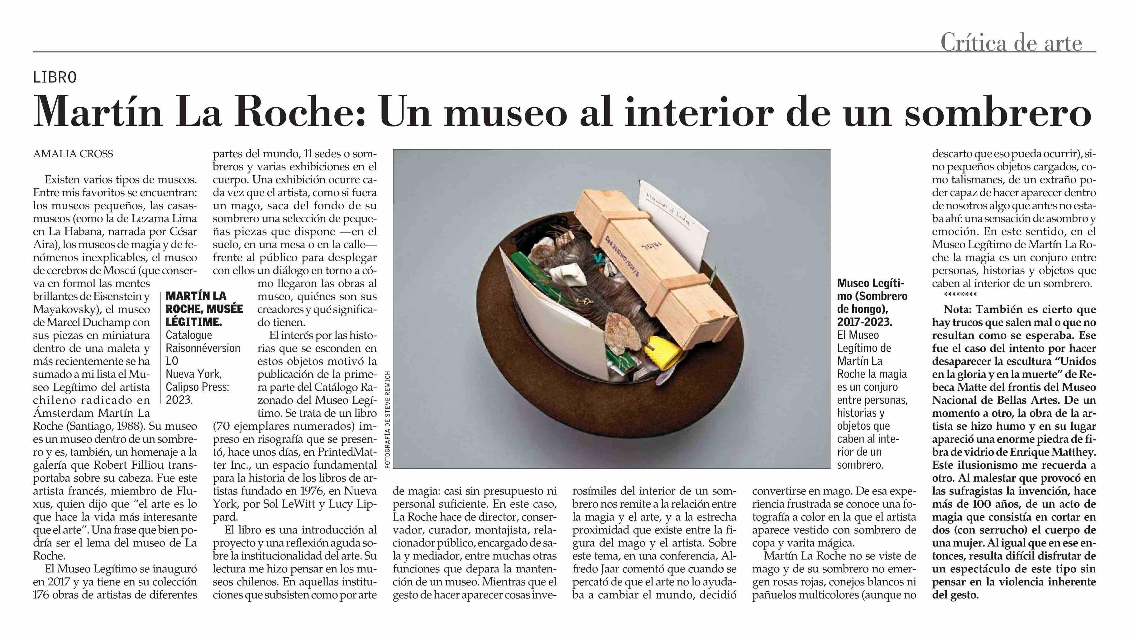 Martín La Roche: Un museo al interior de un sombrero 17-12-2023 El Mercurio |