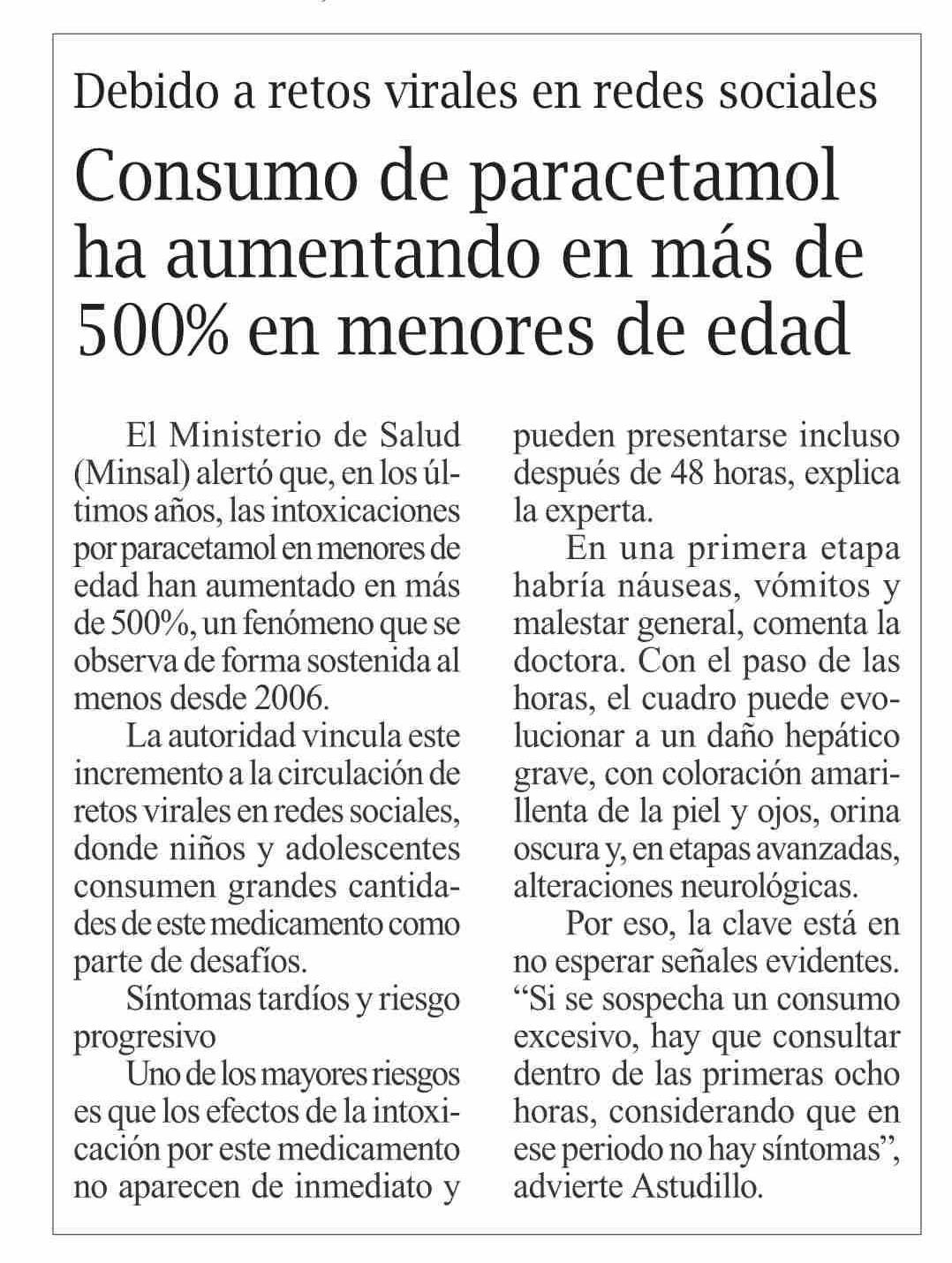 Título: Consumo de paracetamol ha aumentando en más de 500% en menores de edad