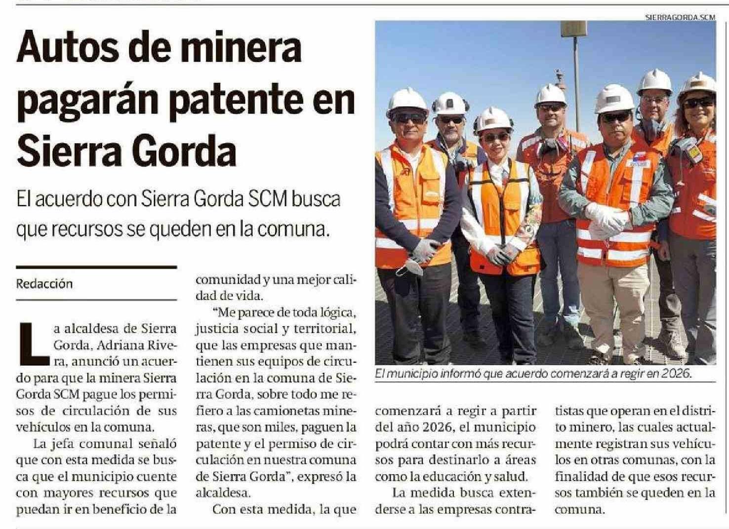 Título: Autos de minera pagarán patente en Sierra Gorda