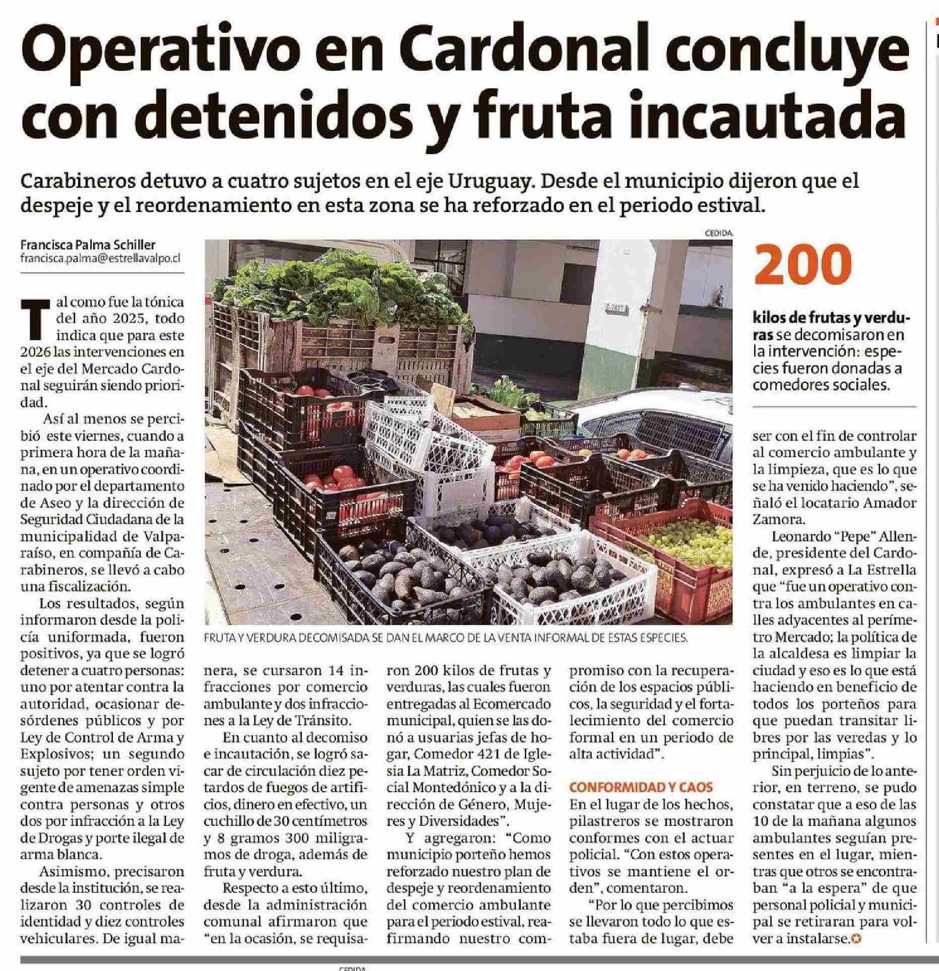 Operativo en Cardonal concluye con detenidos y fruta incautada 10-01-2026 La Estrella de Valparaíso |