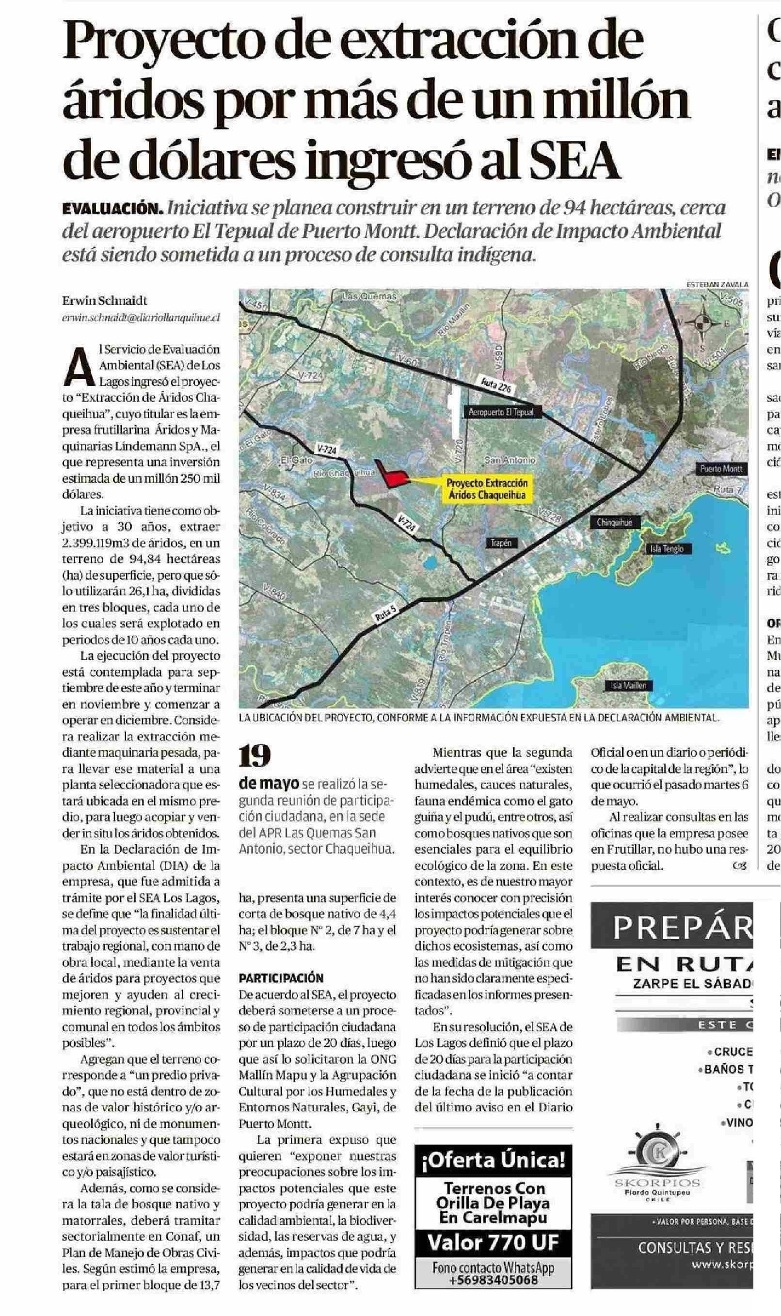 Proyecto de extracción de áridos por más de un millón de dólares ingresó al SEA 25-05-2025 El Llanquihue |