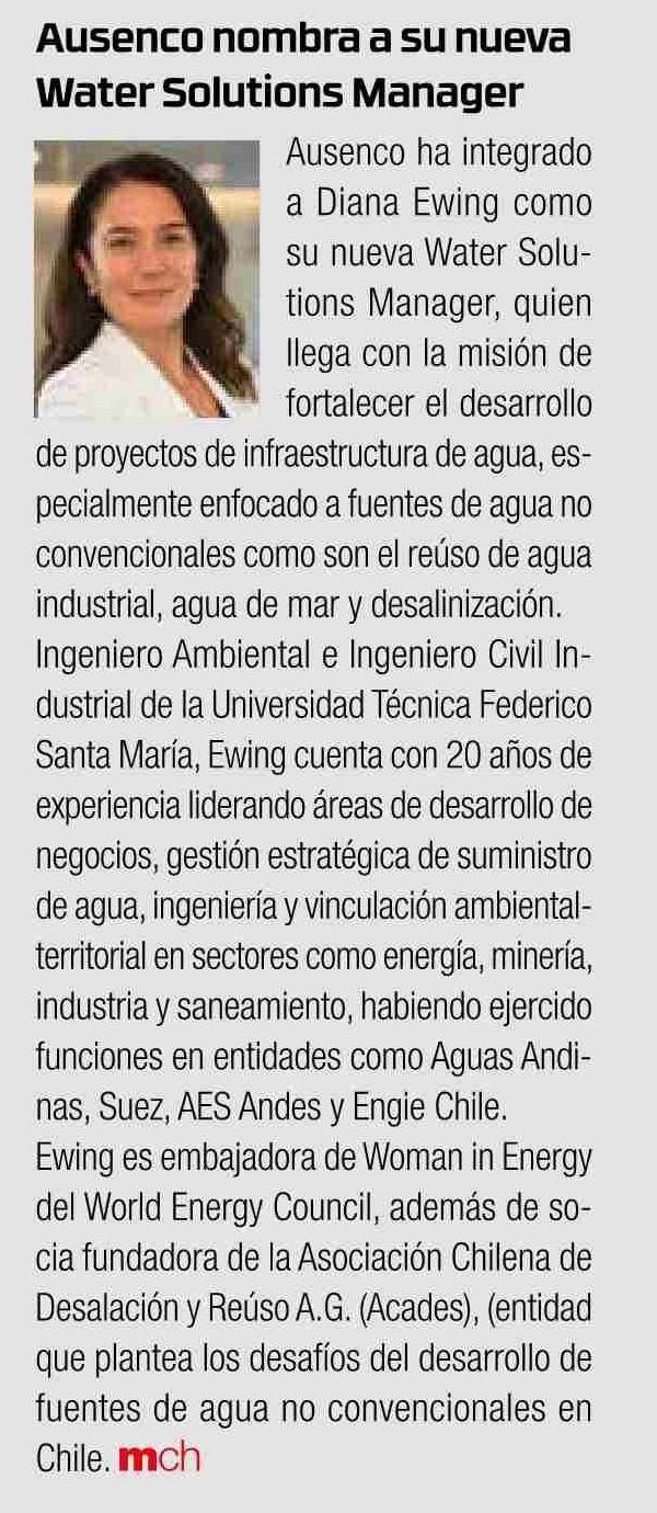 Ausenco nombra a su nueva Water Solutions Manager 19-03-2026 Revista Minería Chilena |
