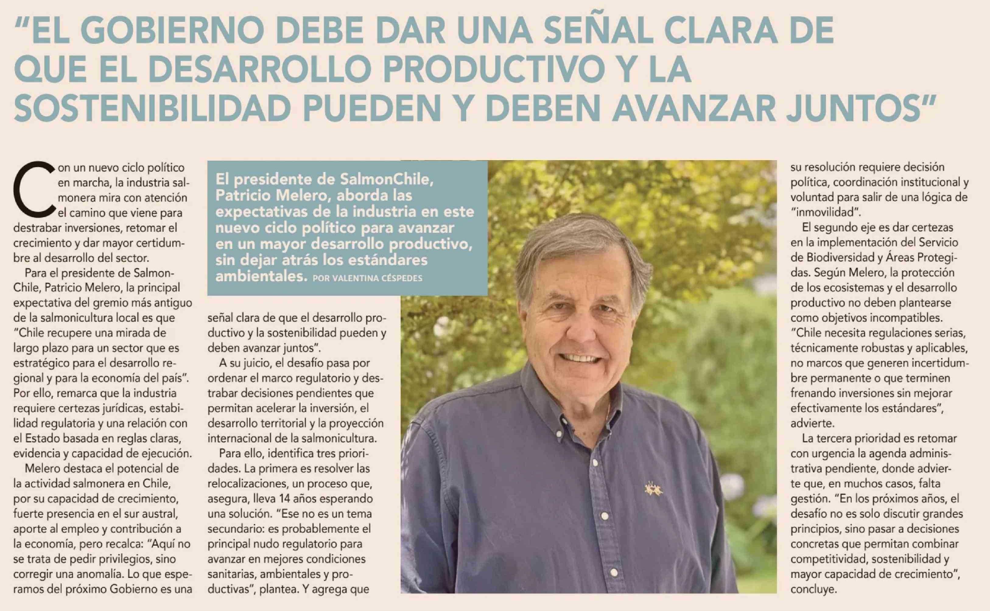 Título: "EL GOBIERNO DEBE DAR UNA SEÑAL CLARA DE QUE EL DESARROLLO PRODUCTIVO Y LA SOSTENIBILIDAD PUEDEN Y DEBEN AVANZAR JUNTOS"