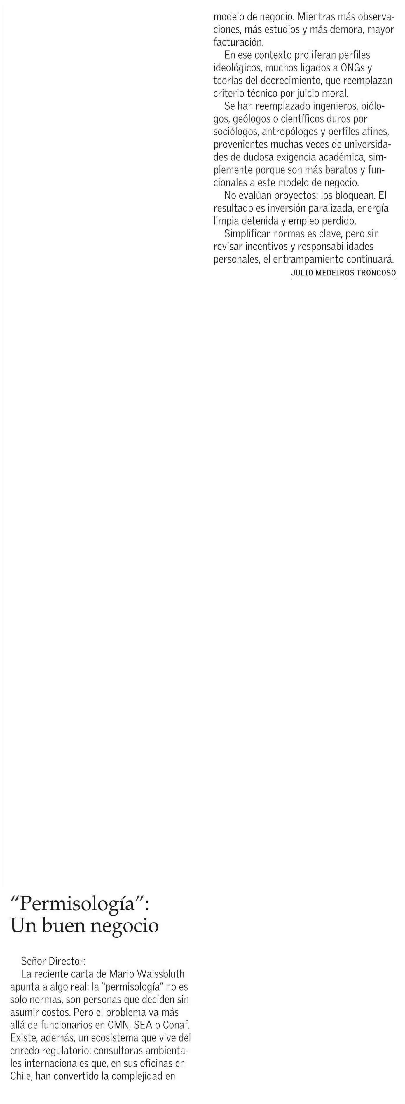 Título: Cartas: “Permisología”: Un buen negocio