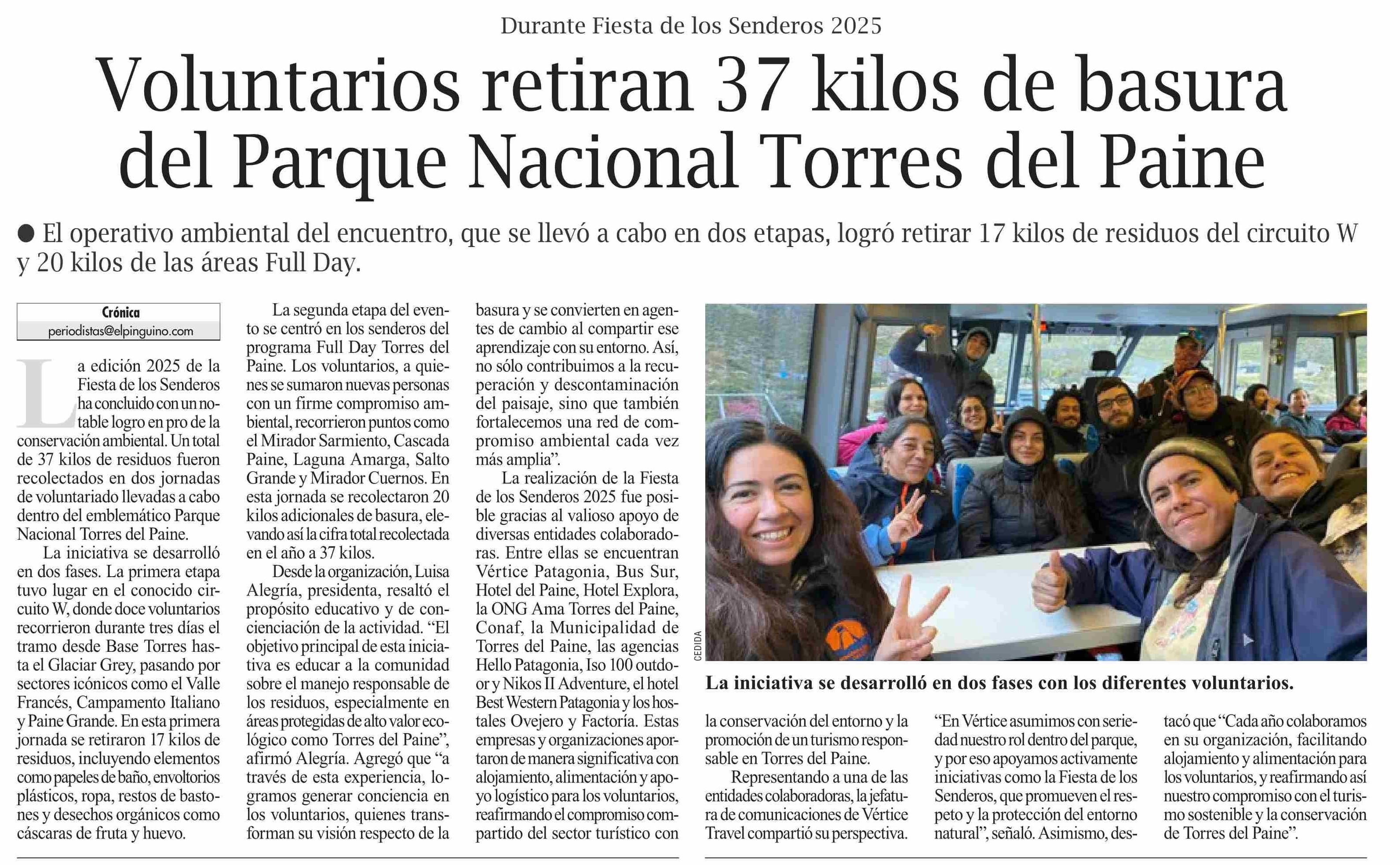 Voluntarios retiran 37 kilos de basura del Parque Nacional Torres del Paine 05-06-2025 El Pingüino |