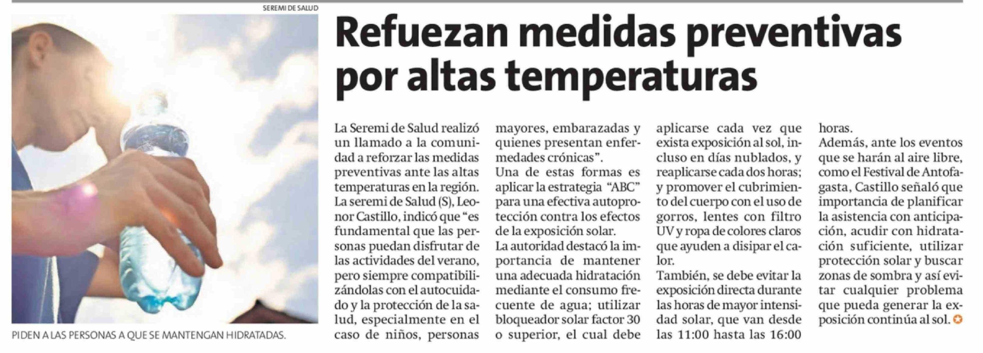 Refuezan medidas preventivas por altas temperaturas 12-02-2026 La Estrella de Antofagasta |