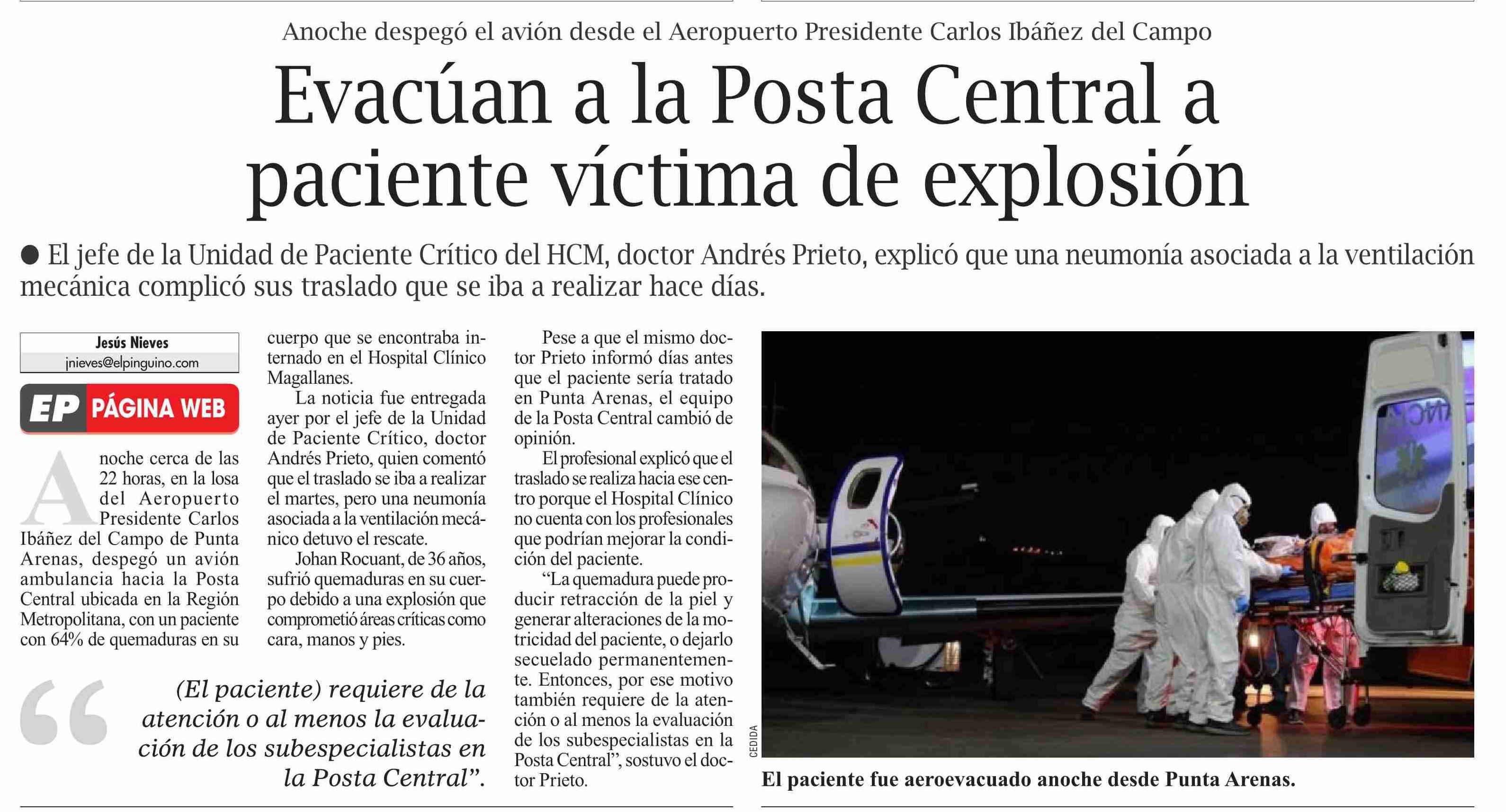 Evacúan a la Posta Central a paciente víctima de explosión 15-01-2026 El Pingüino |