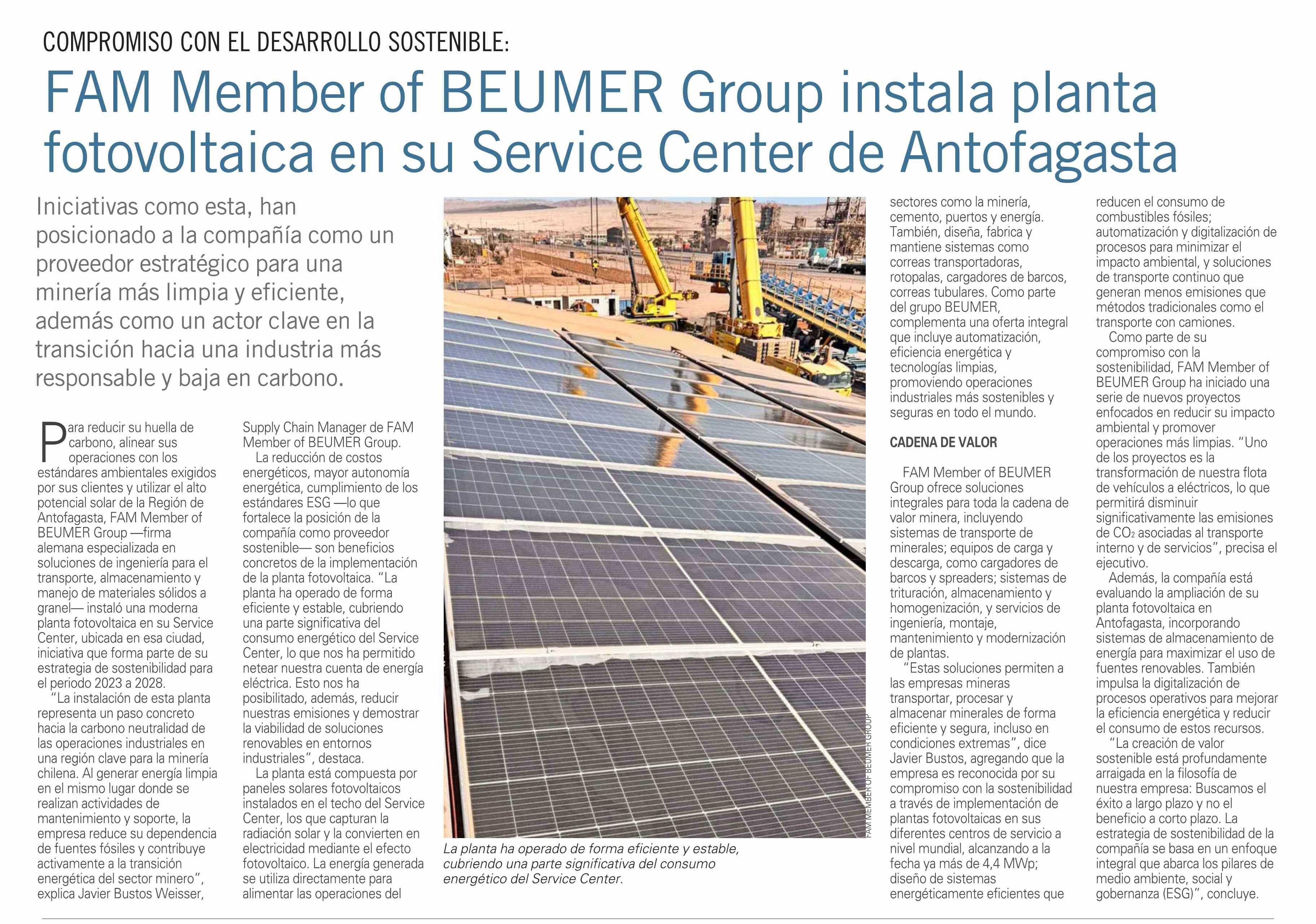 Título: FAM Member of BEUMER Group instala planta fotovoltaica en su Service Center de Antofagasta