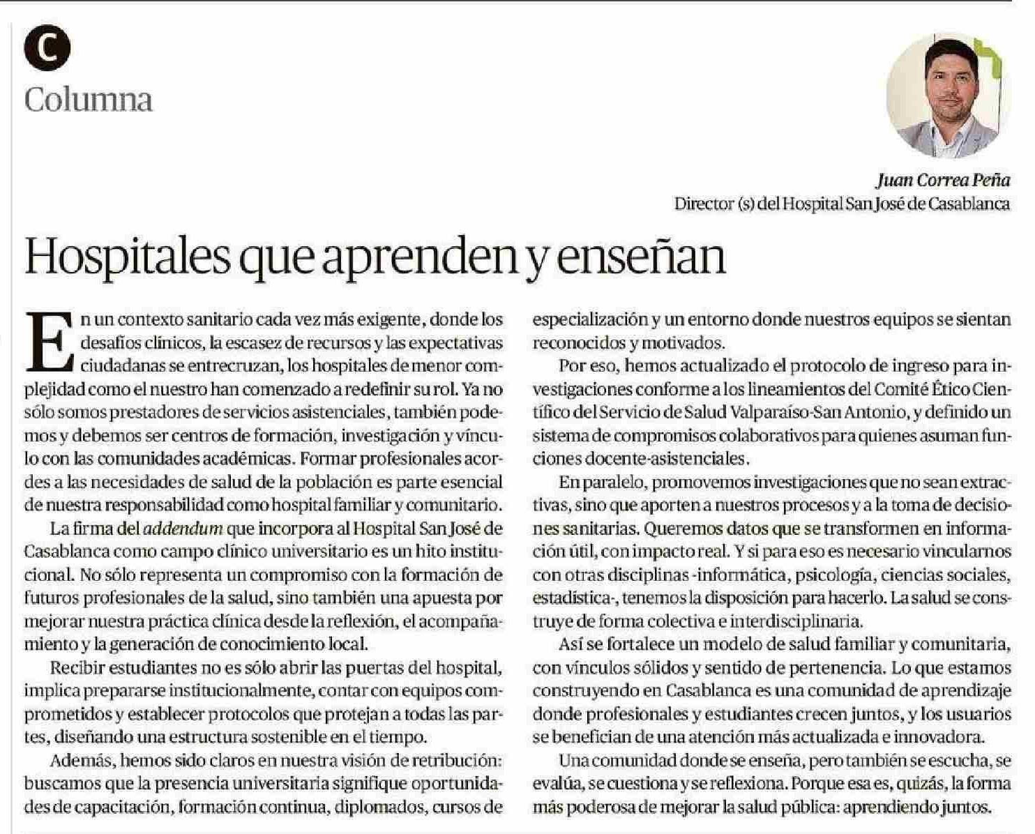 Título: Columnas de Opinión: Hospitales que aprenden y enseñan