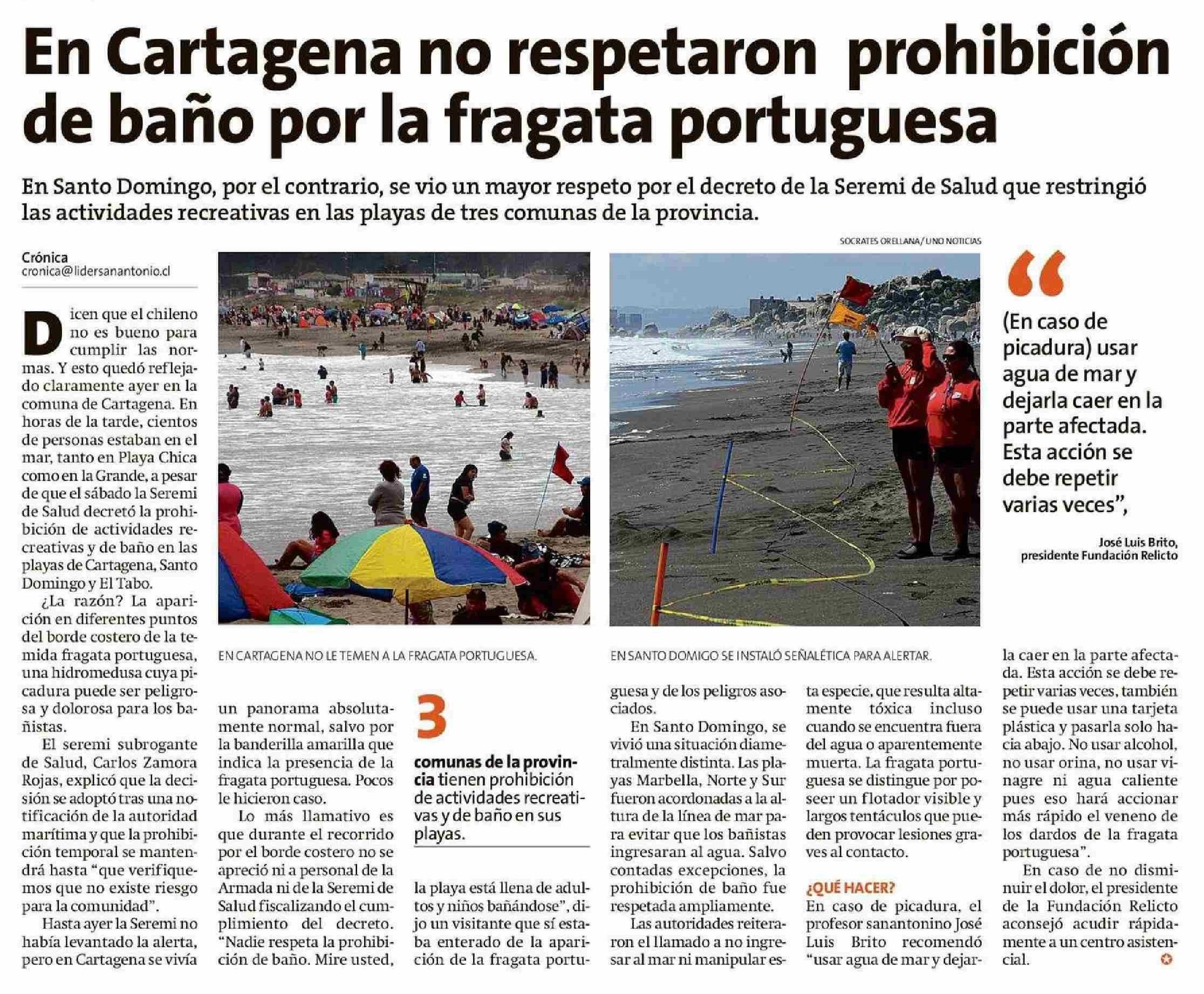 | Título: | En Cartagena no respetaron prohibición de baño por la fragata portuguesa |