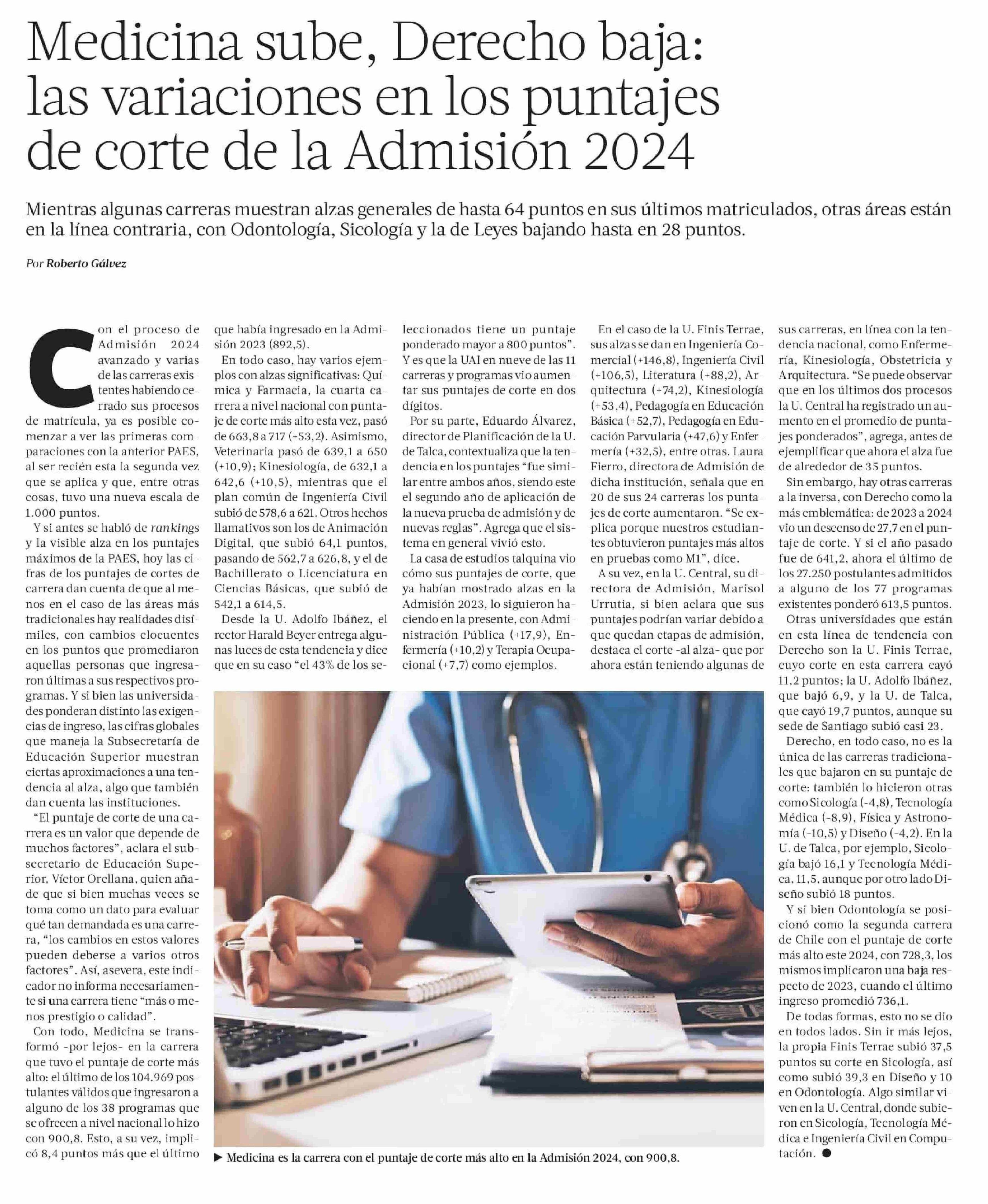 Título: Medicina sube, Derecho baja: las variaciones en los puntajes de corte de la Admisión 2024