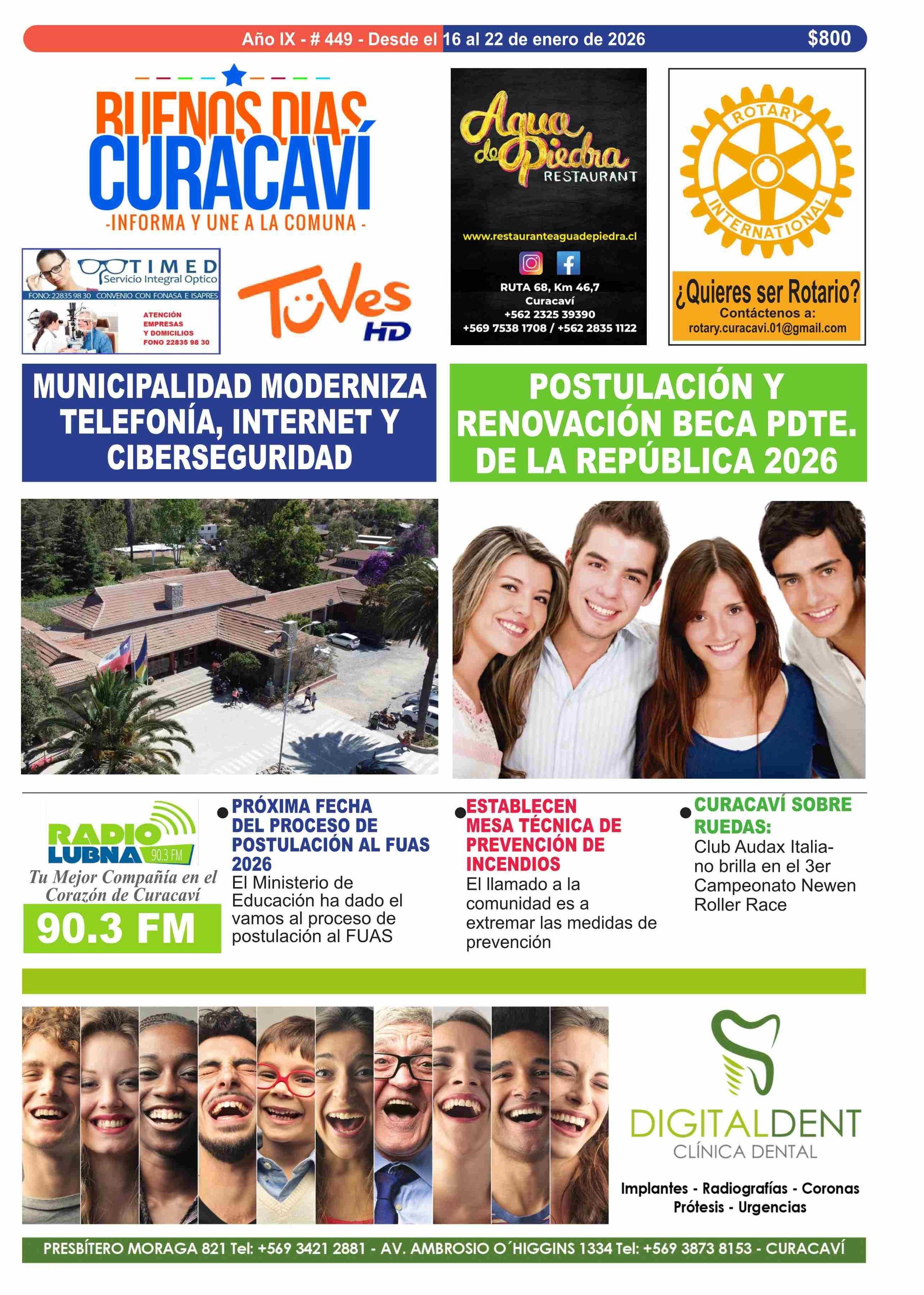 PORTADA BUENOS DÍAS CURACAVÍ - CHILE 16-01-2026 Buenos Días Curacaví |