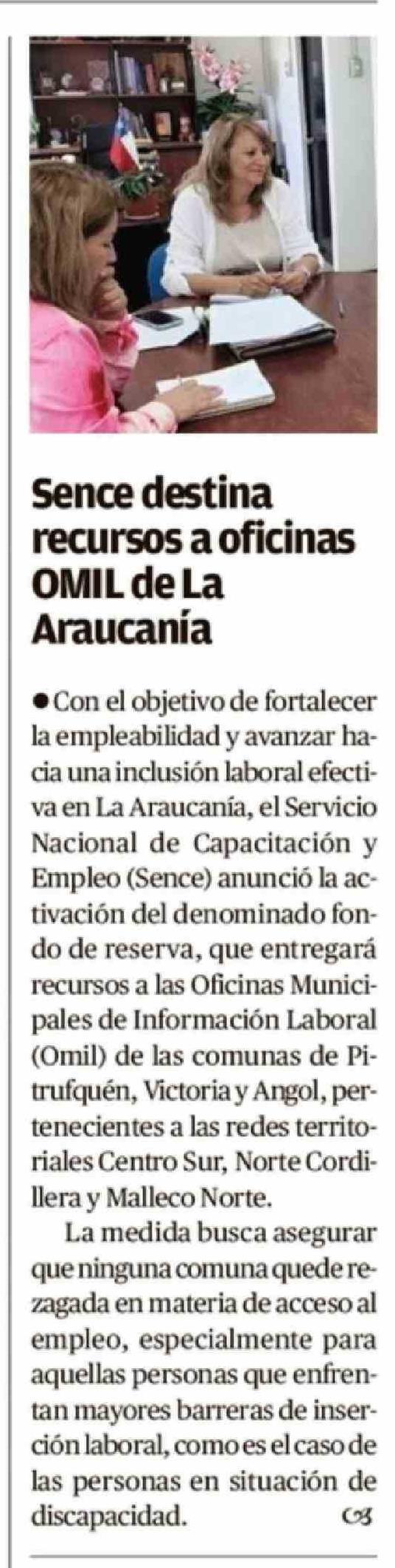 Sence destina recursos a oficinas OMIL de La Araucania 17-02-2026 El Austral de la Araucanía |