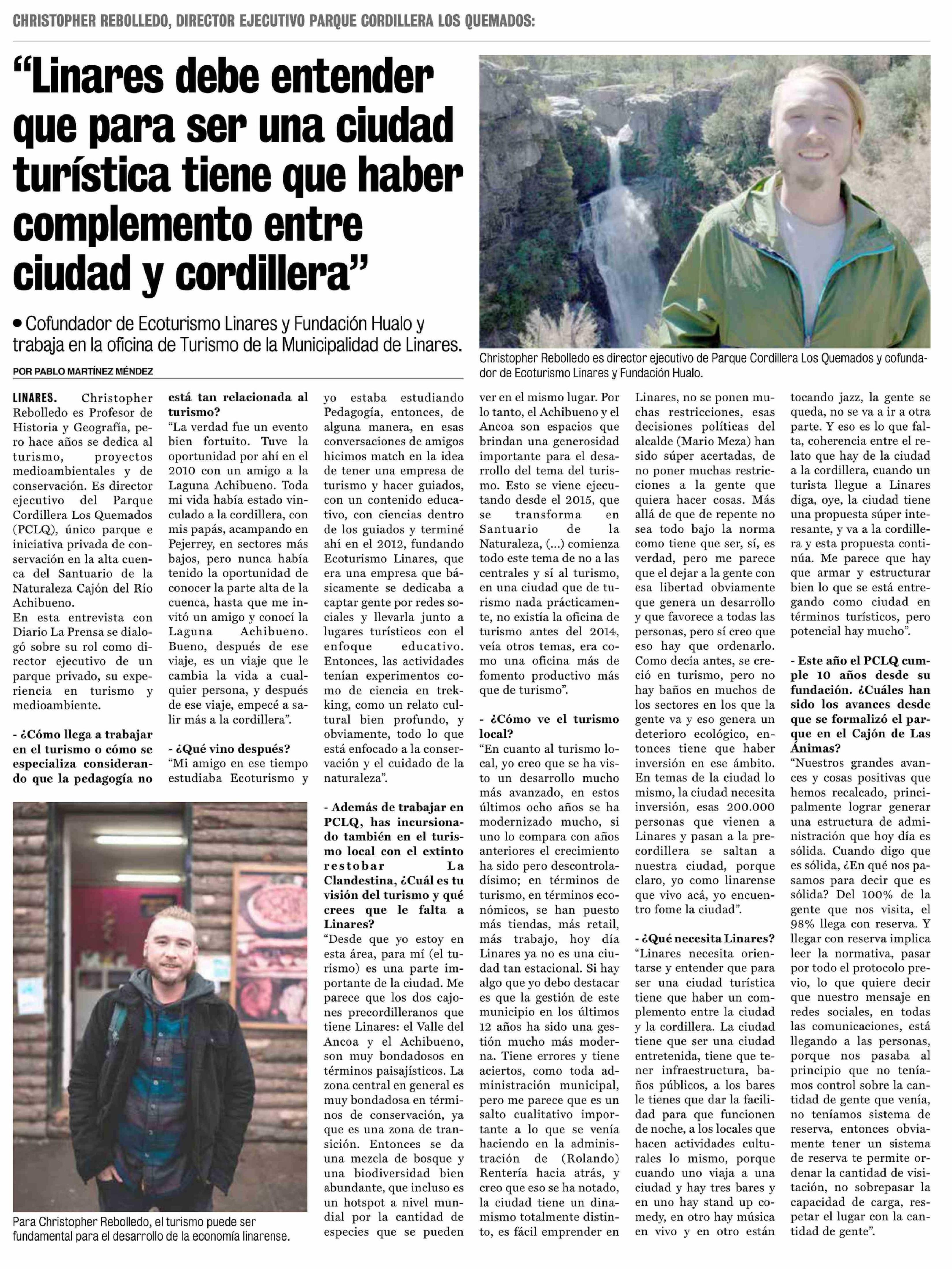 Título: "Linares debe entender que para ser una ciudad turística tiene que haber complemento entre ciudad y cordillera"