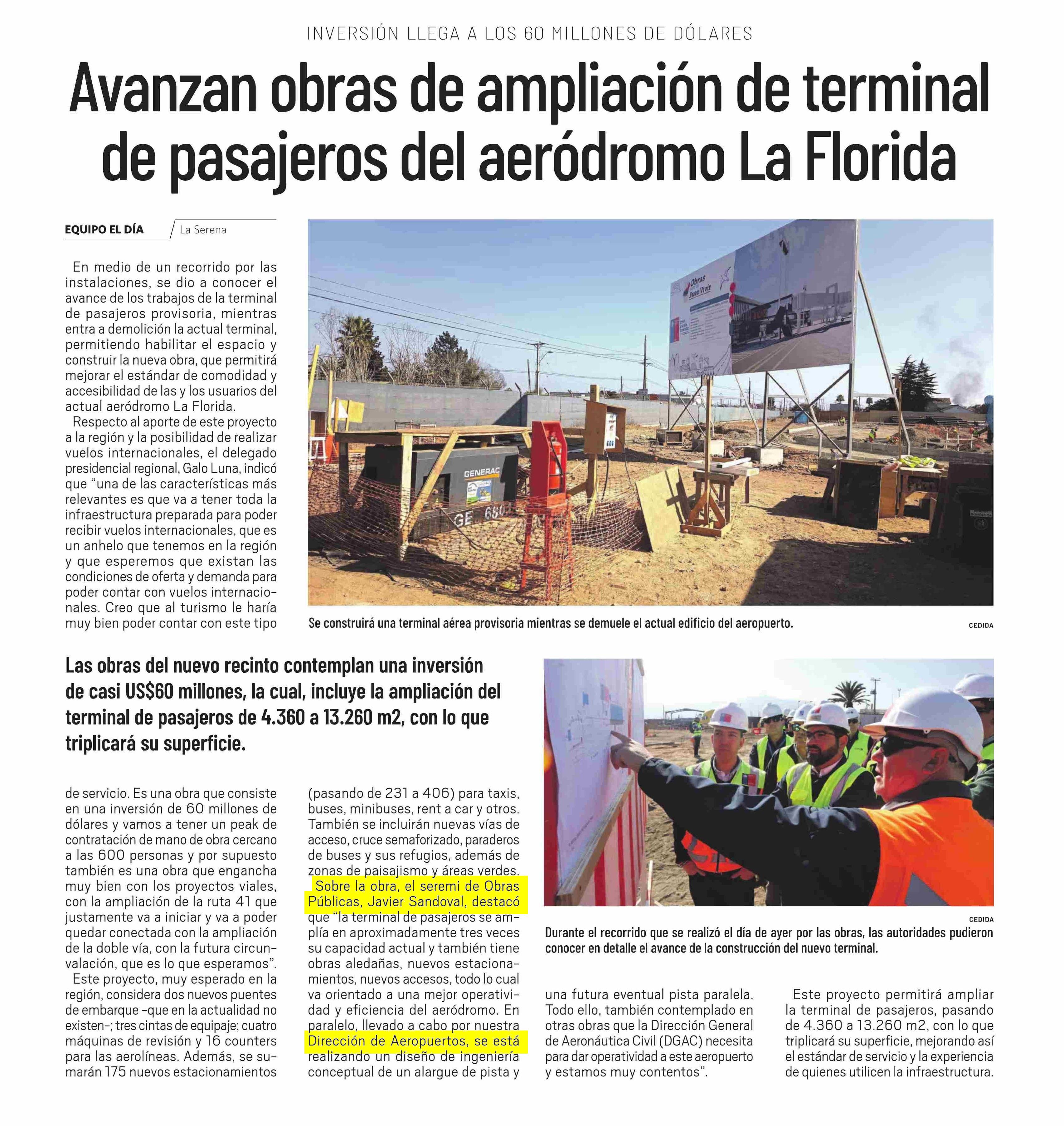 | Título: | Avanzan obras de ampliación de terminal de pasajeros del aeródromo La Florida |