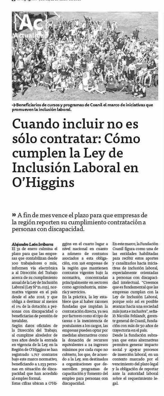Cuando incluir no es sólo contratar: Cómo cumplen la Ley de Inclusión Laboral en O'Higgins 22-01-2026 El Tipógrafo |