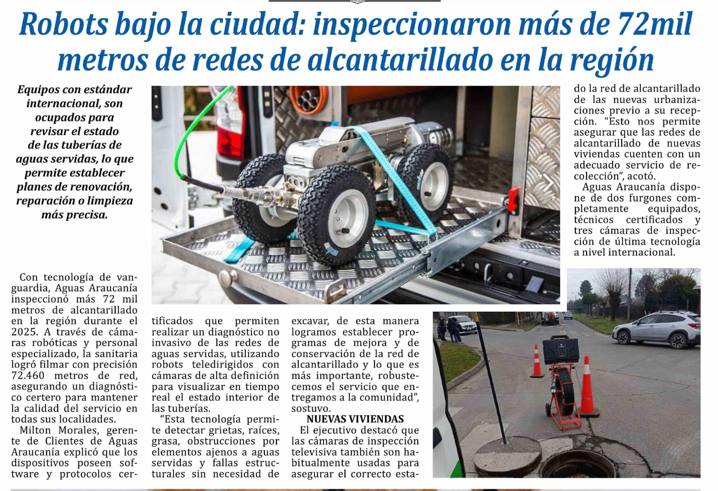 Robots bajo la ciudad: inspeccionaron más de 72 mil metros de redes de alcantarillado en la región 18-04-2026 Las Noticias |