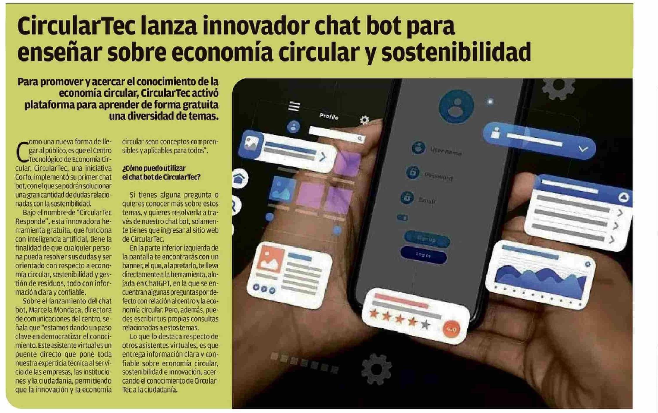 | Título: | CircularTec lanza innovador chat bot para enseñar sobre economía circular y sostenibilidad |