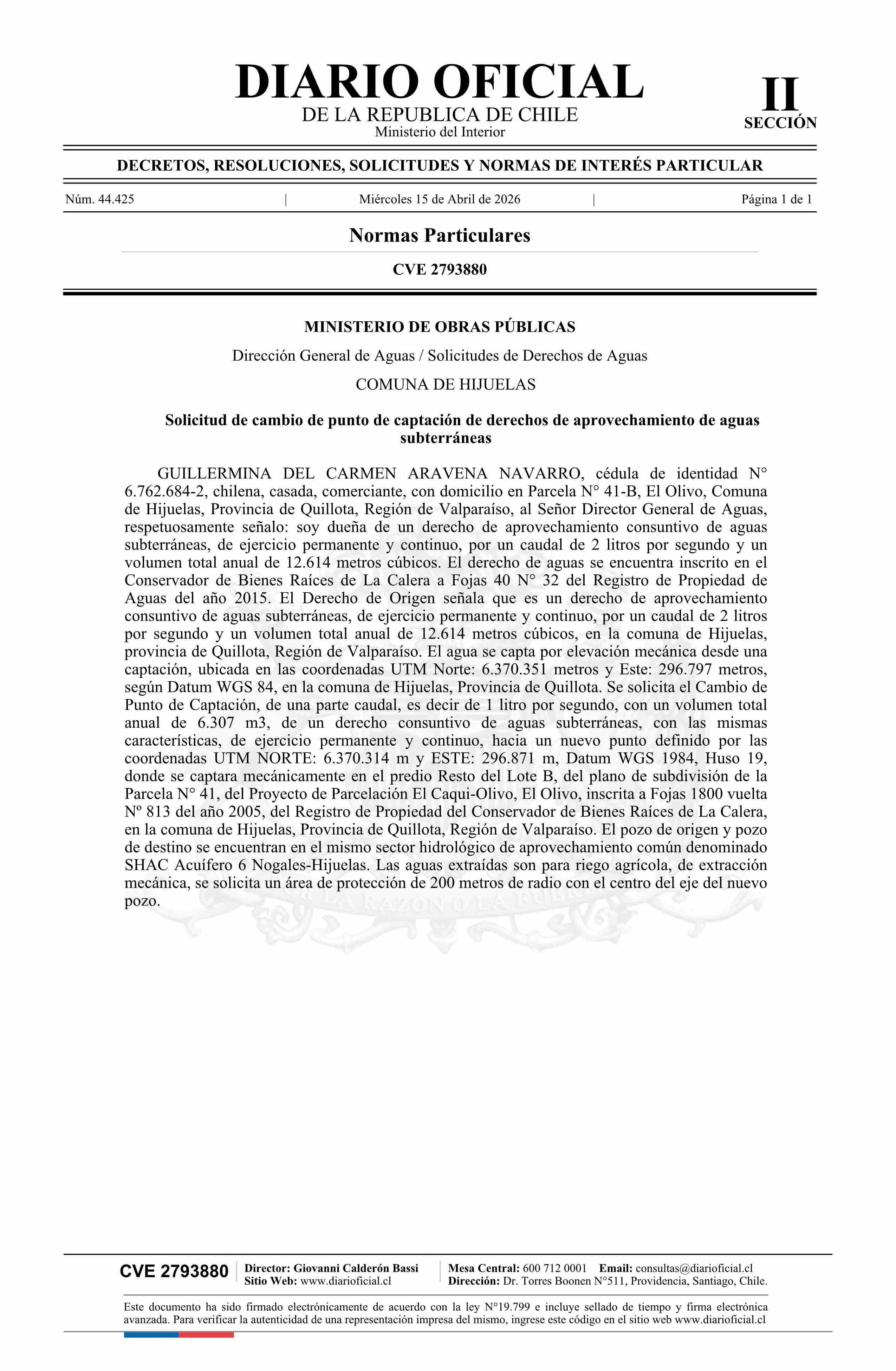 Solicitud Aravena Navarro Guillermina del Carmen 15-04-2026 Diario Oficial Edición Electrónica |