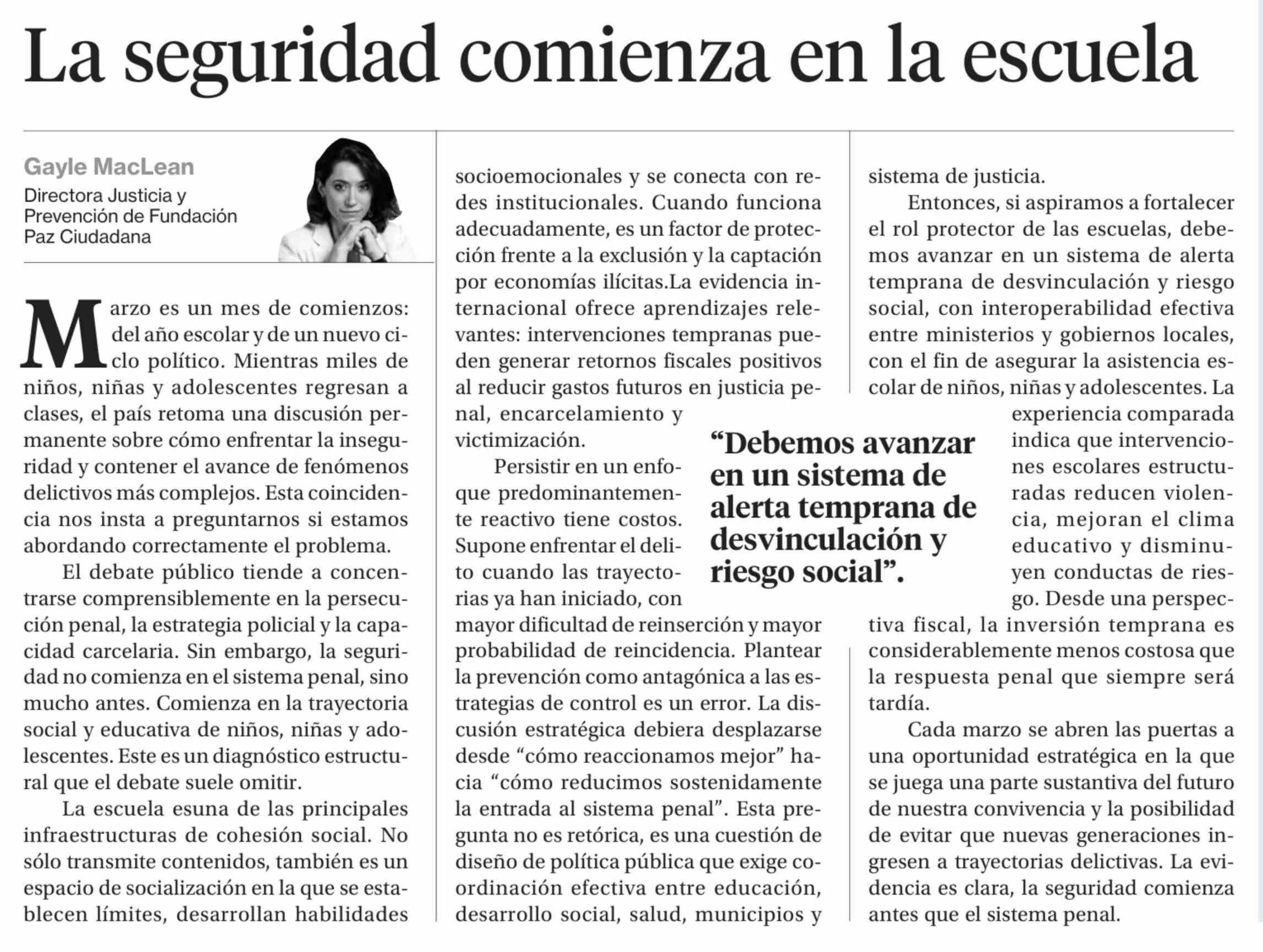 Título: Columnas de Opinión: La seguridad comienza en la escuela