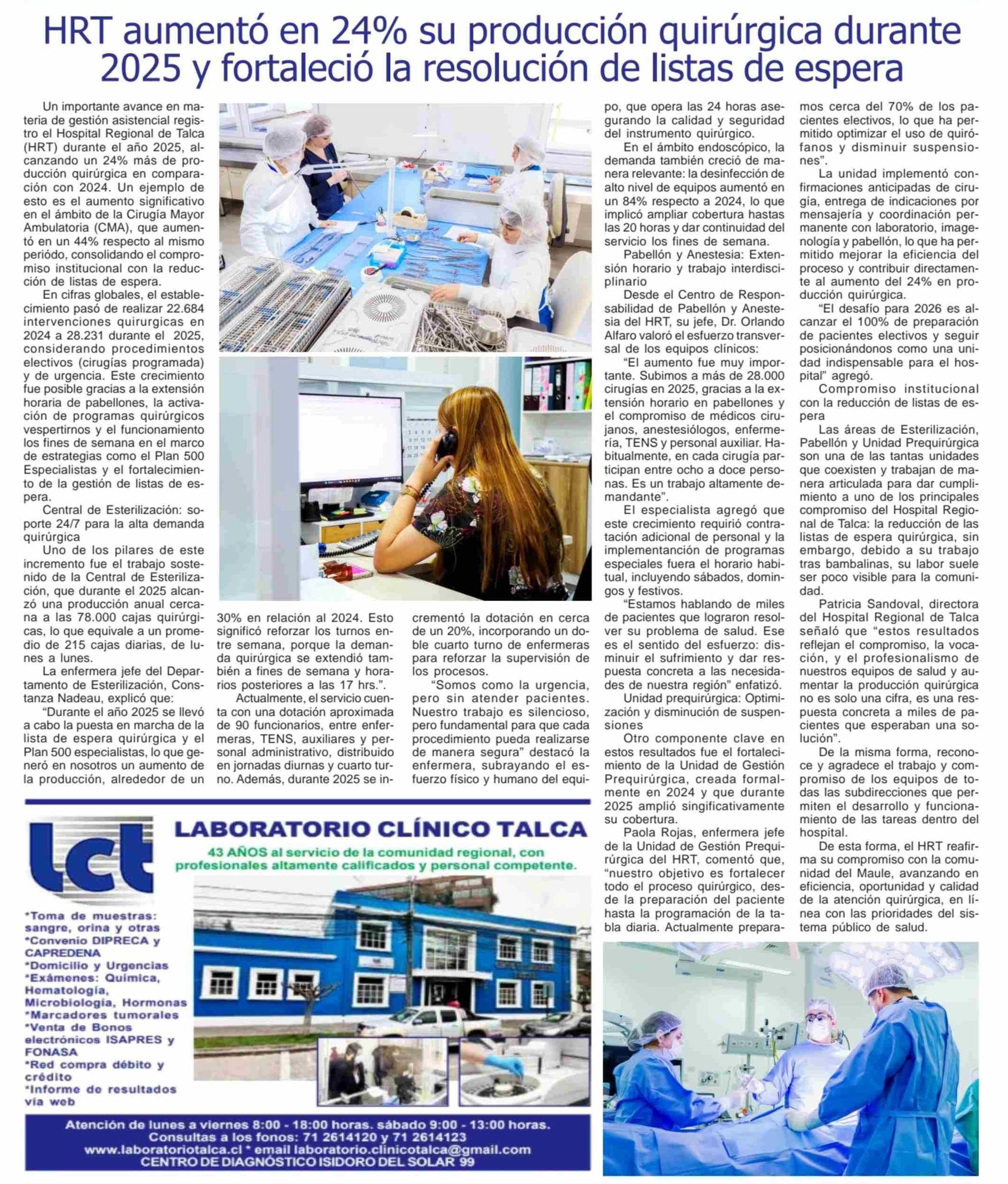 Título: HRT aumentó en 24% su producción quirúrgica durante 2025 y fortaleció la resolución de listas de espera