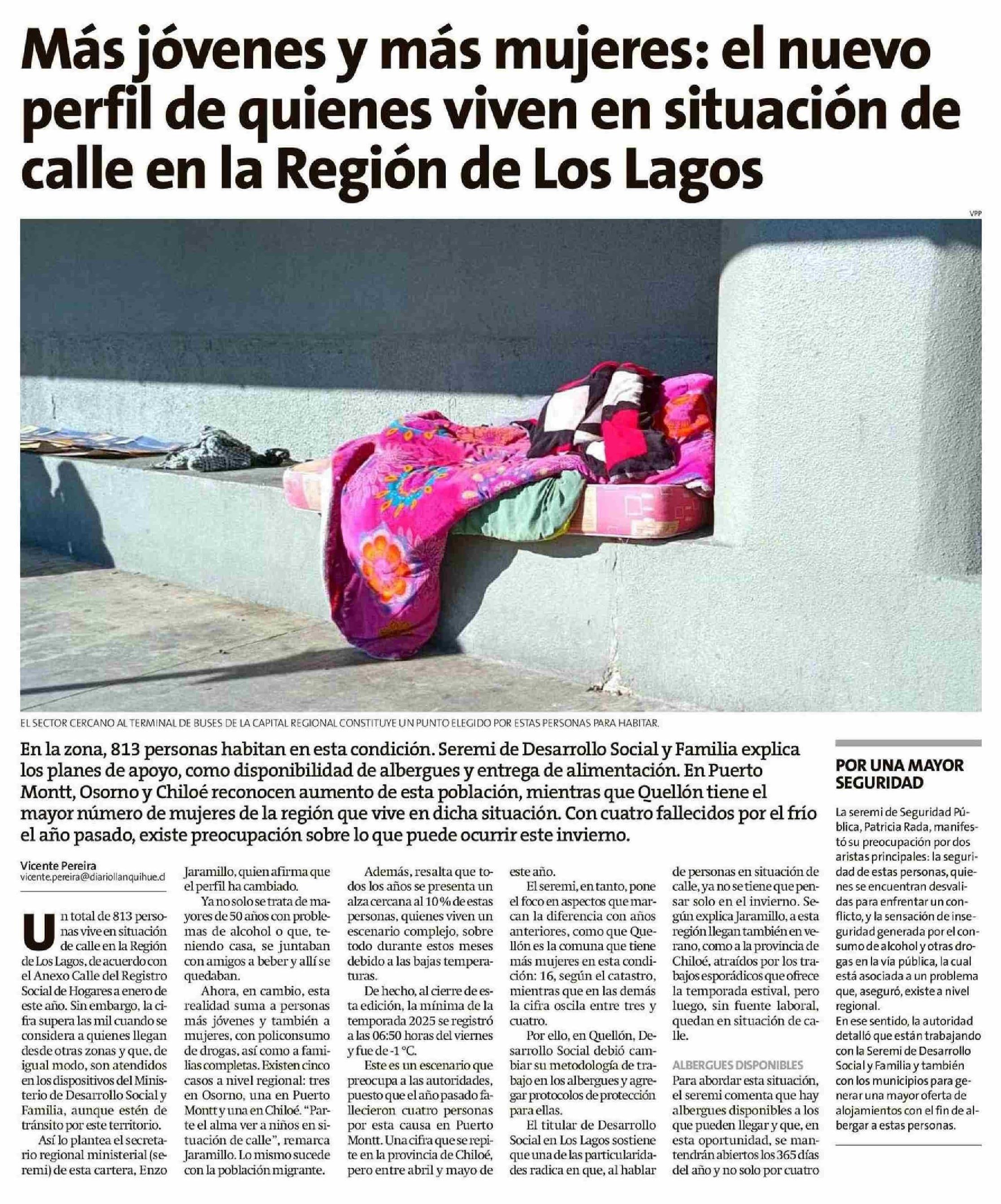 Más jóvenes y más mujeres: el nuevo calle en la Región de Los Lagos perfil de quienes viven en situación de 08-06-2025 La Estrella de Chiloé |