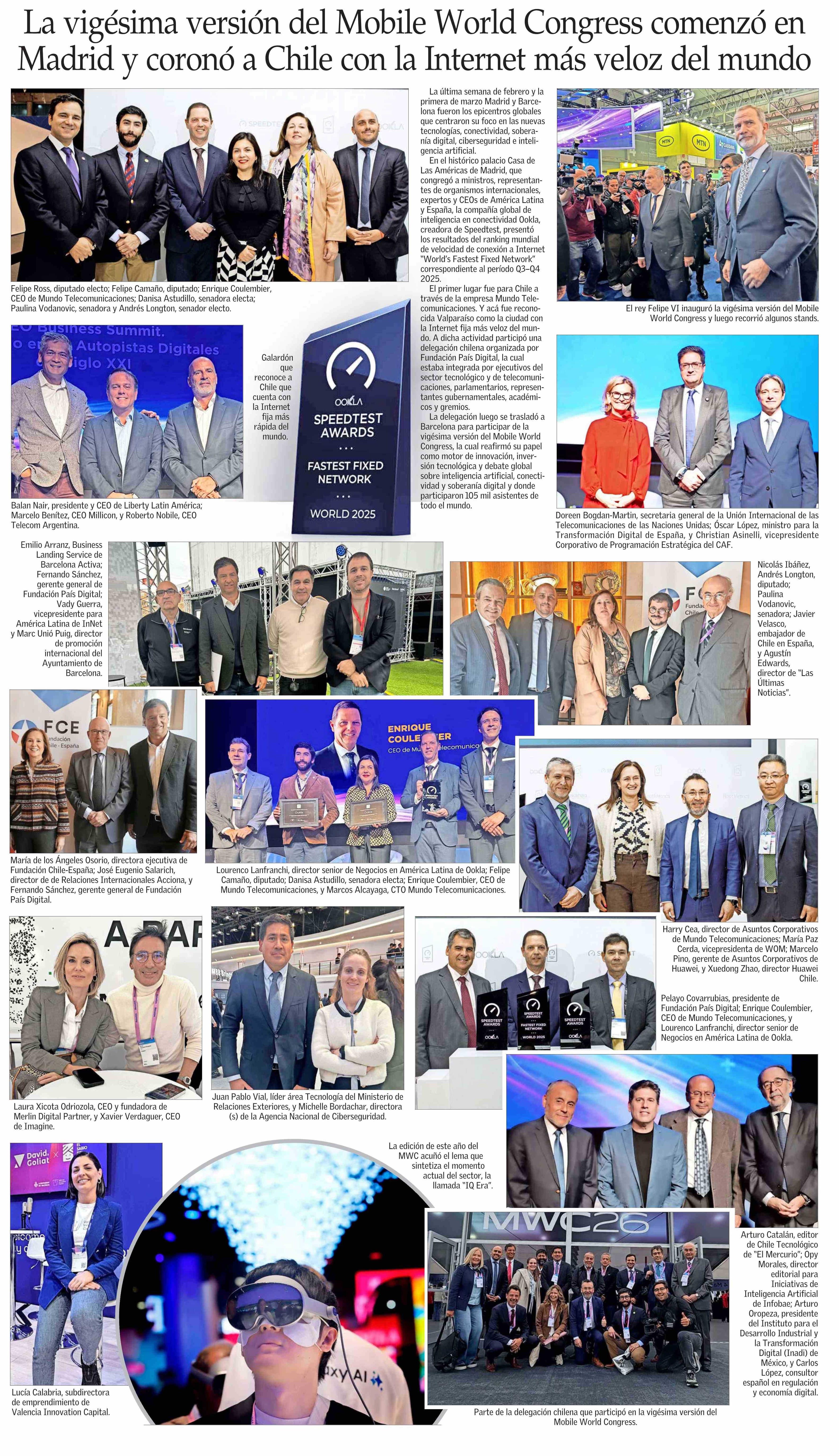 Título: La vigésima versión del Mobile World Congress comenzó en Madrid y coronó a Chile con la Internet más veloz del mundo