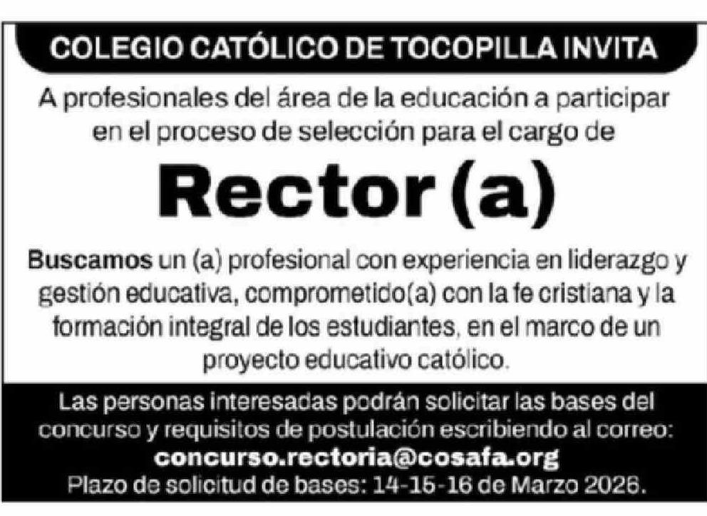 Aviso Licitaciones: COLEGIO CATÓLICO DE TOCOPILLA 14-03-2026 El Mercurio de Antofagasta |