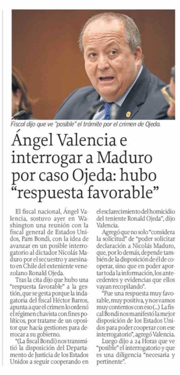 | Título: | Ángel Valencia e interrogar a Maduro por caso Ojeda: hubo 'respuesta favorable" |