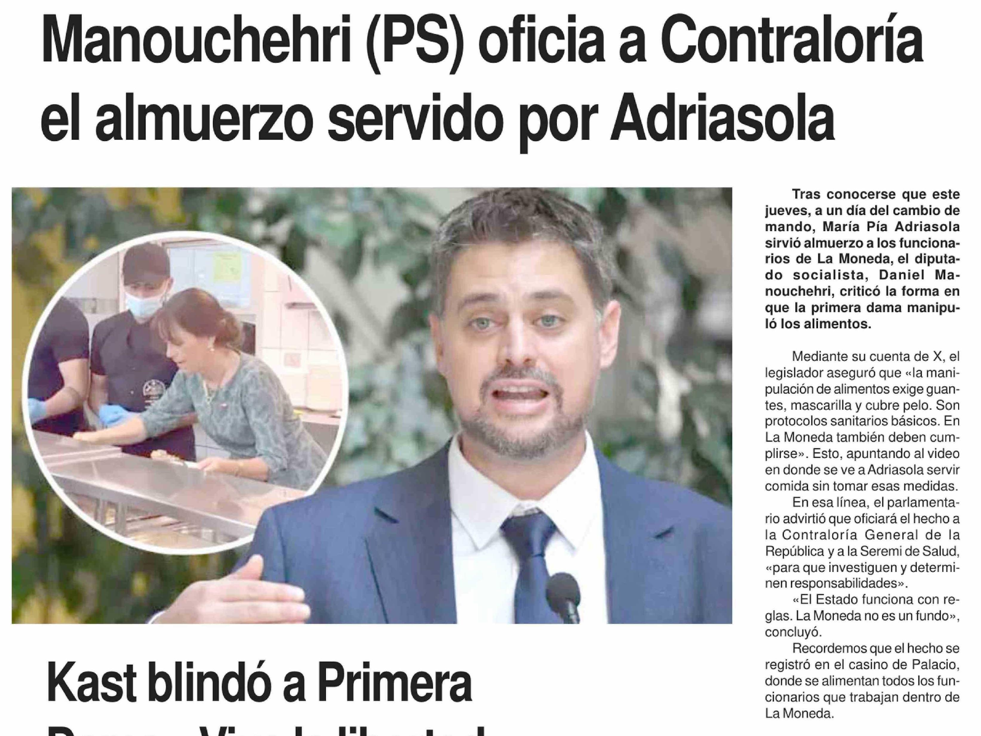 Título: Manouchehri (PS) oficia a Contraloría el almuerzo servido por Adriasola