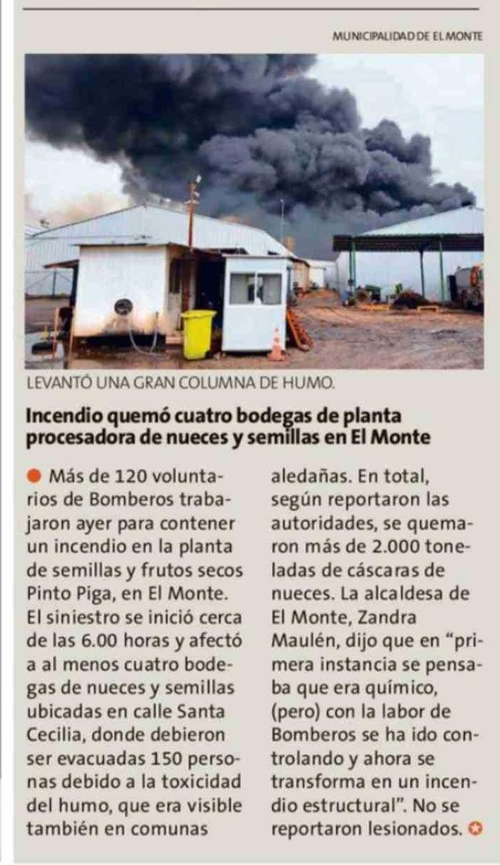 Título: Incendio quemó cuatro bodegas de planta procesadora de nueces y semillas en El Monte