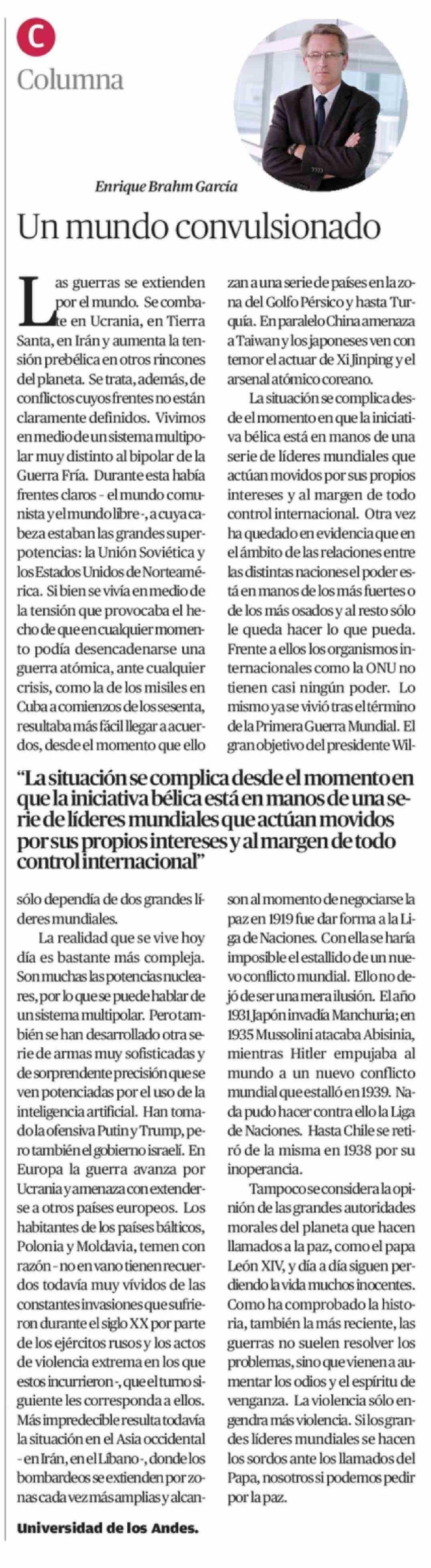 Columnas de Opinión: Un mundo convulsionado 22-03-2026 El Mercurio de Antofagasta |