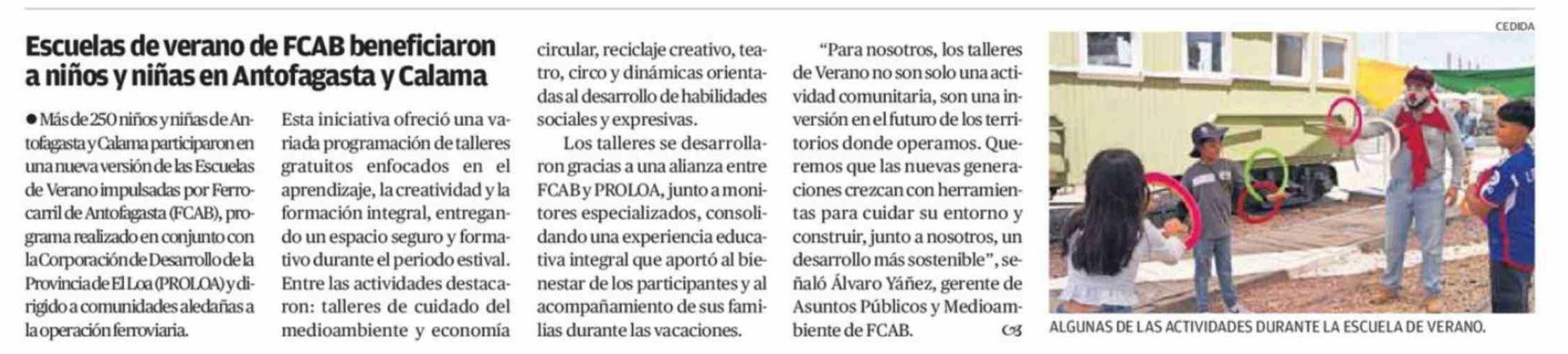 Título: Escuelas de verano de FCAB beneficiaron a niños y niñas en Antofagasta y Calama