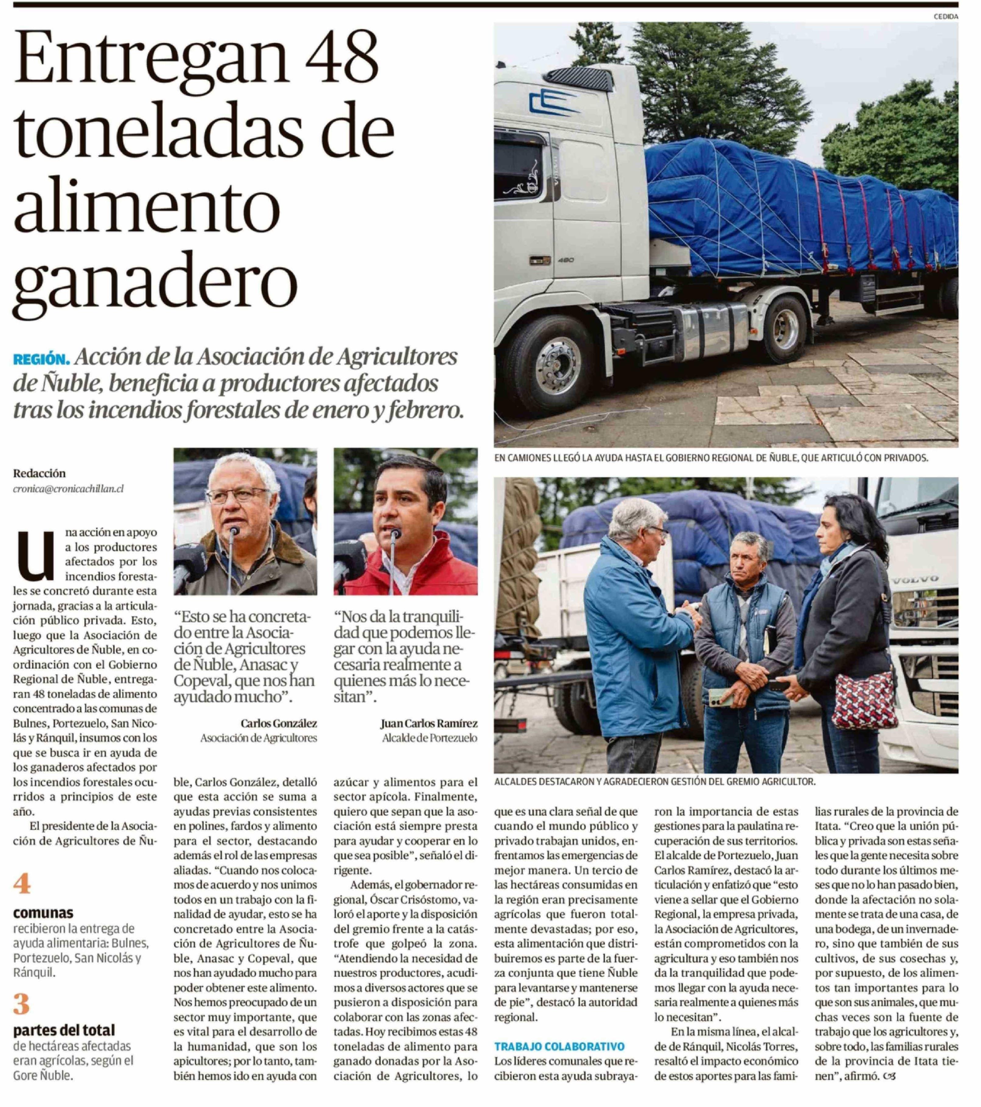 Entregan 48 toneladas de alimento ganadero 21-03-2026 Crónica de Chillán |