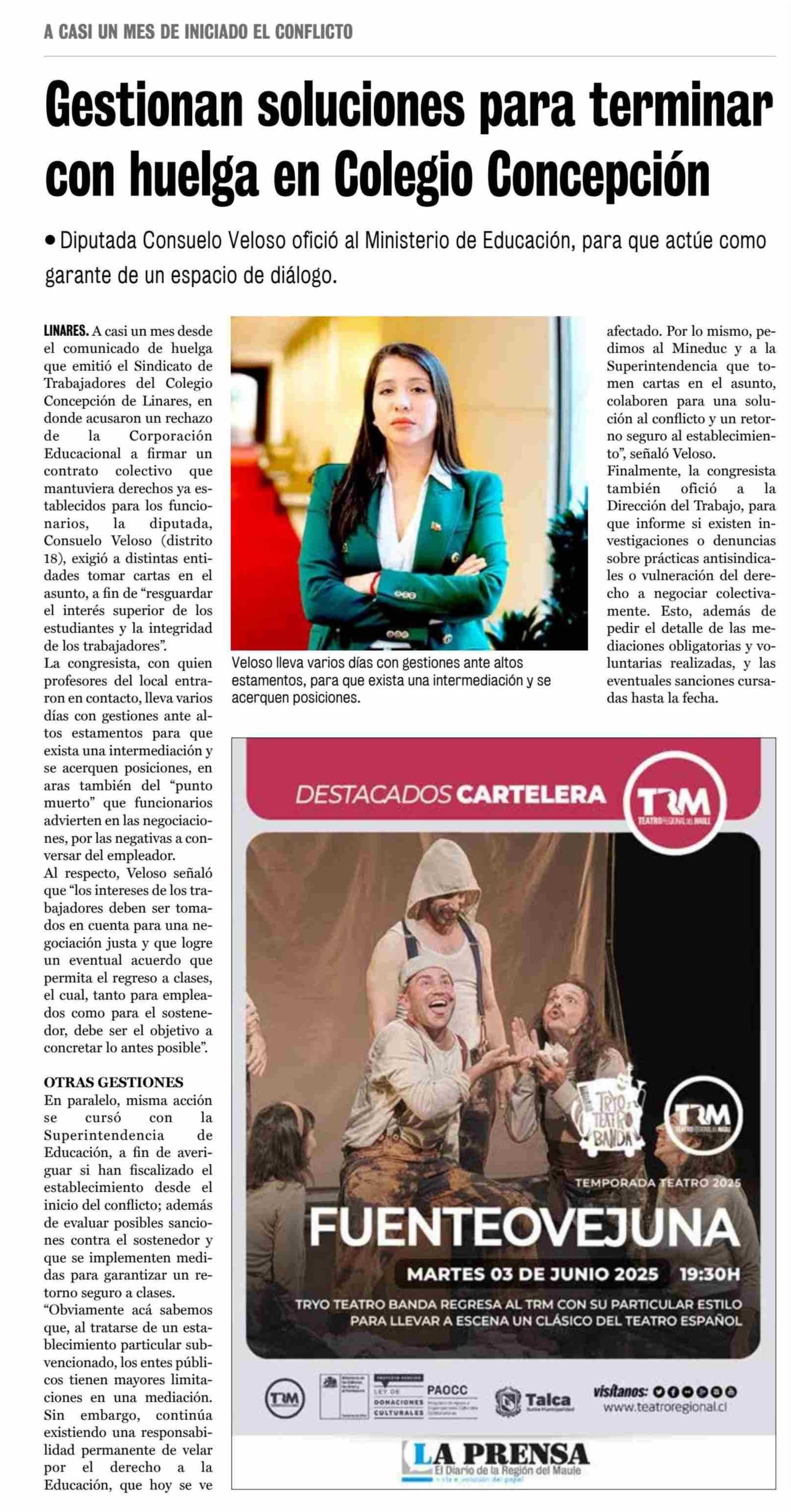 Gestionan soluciones para terminar con huelga en Colegio Concepción 01-06-2025 La Prensa de Curicó |