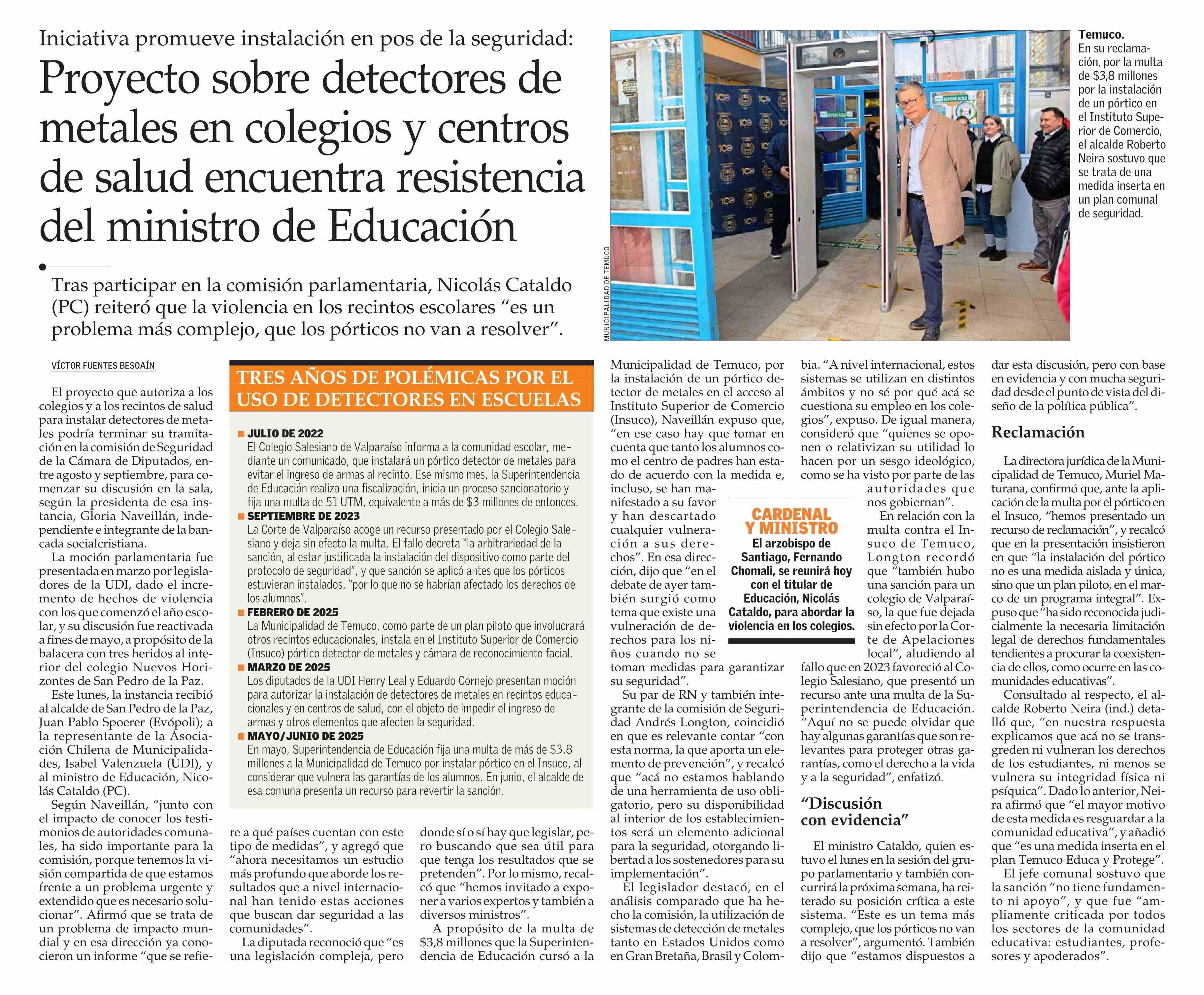 Proyecto sobre detectores de metales en colegios y centros de salud encuentra resistencia del ministro de Educación 11-06-2025 El Mercurio |