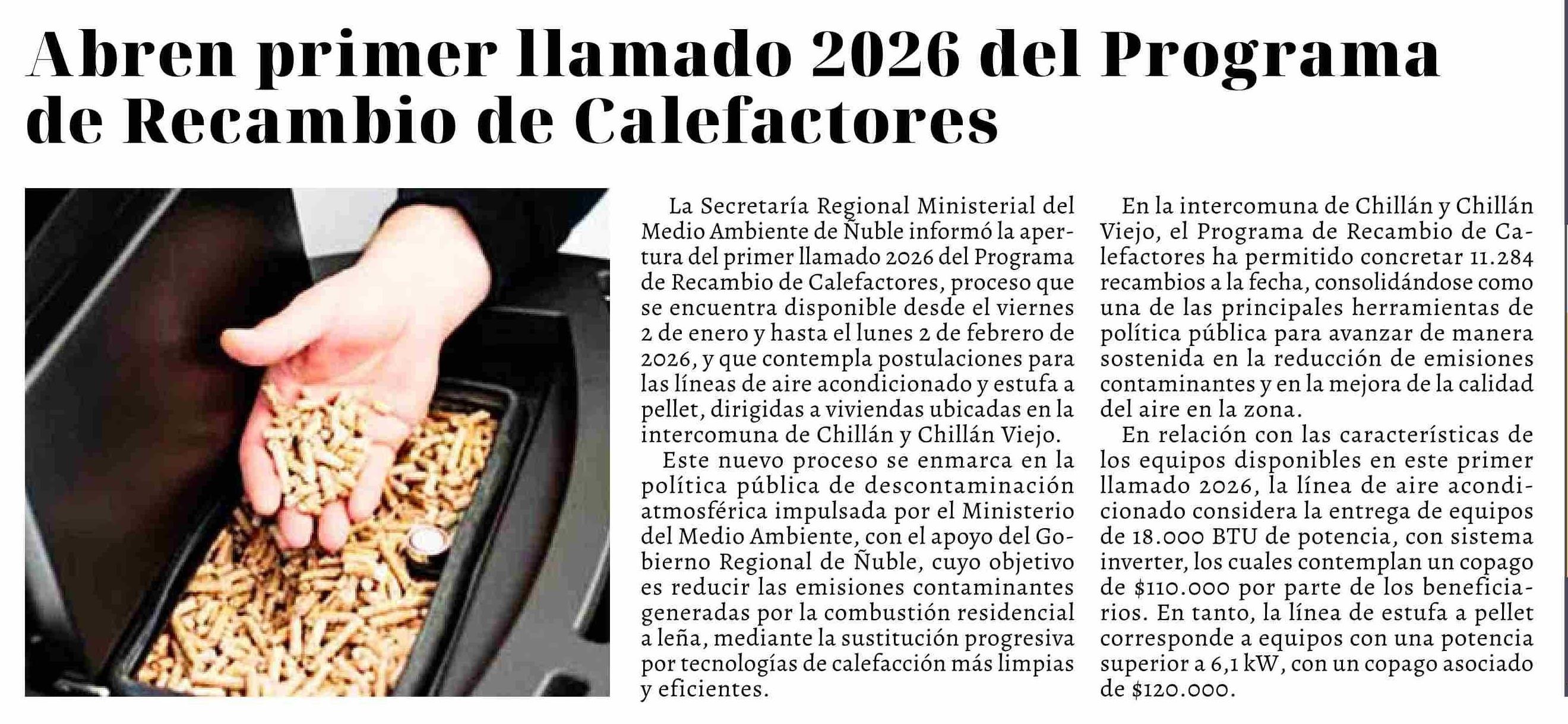 Título: De Recambio de Calefactores Abren primer llamado 2026 del Programa