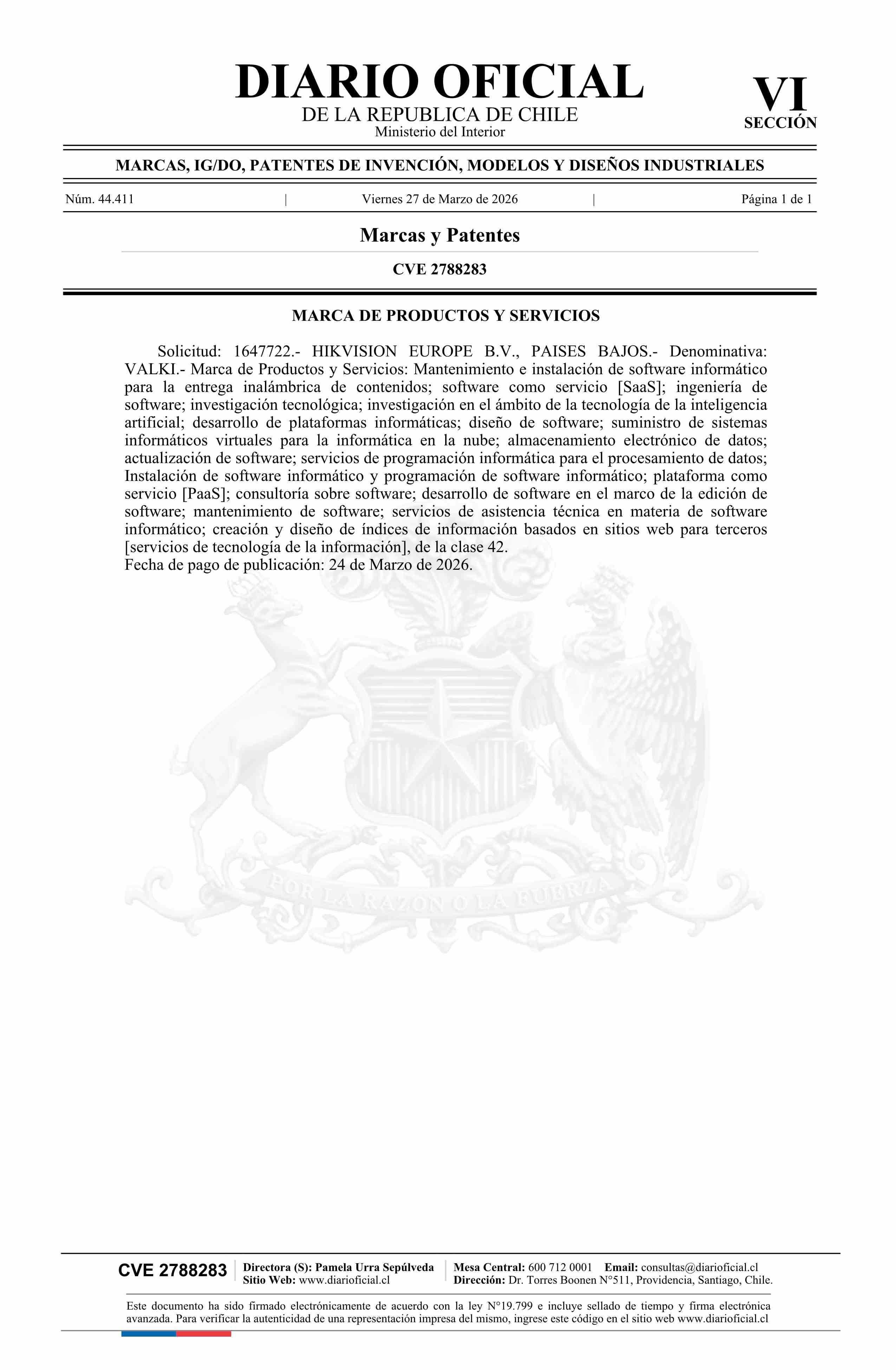 Solicitud número 1647722.- VALKI 27-03-2026 Diario Oficial Edición Electrónica |