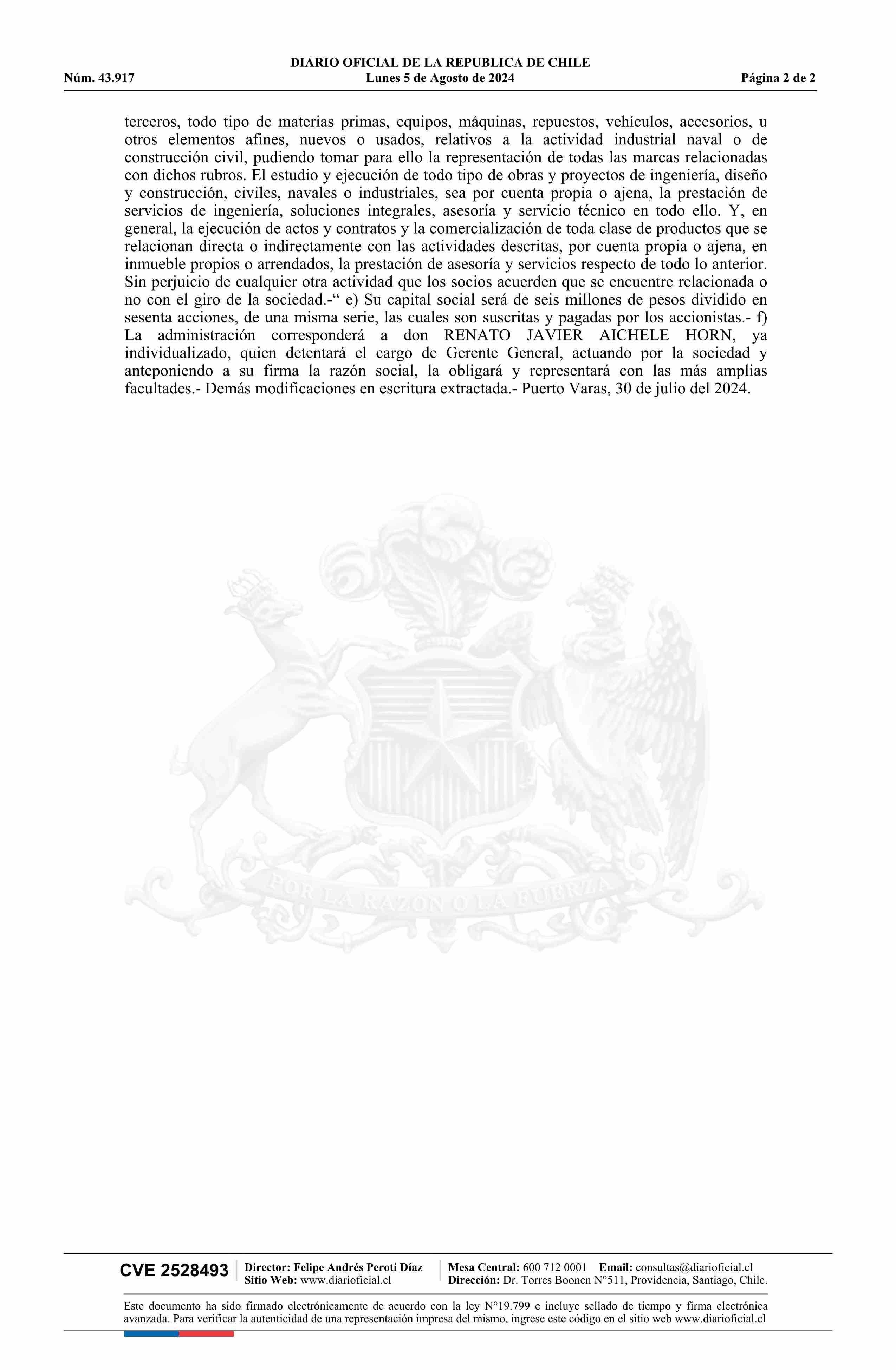 TRANSPORTES HBR LIMITADA 76.536.408-6 05-08-2024 Diario Oficial Edición Electrónica |