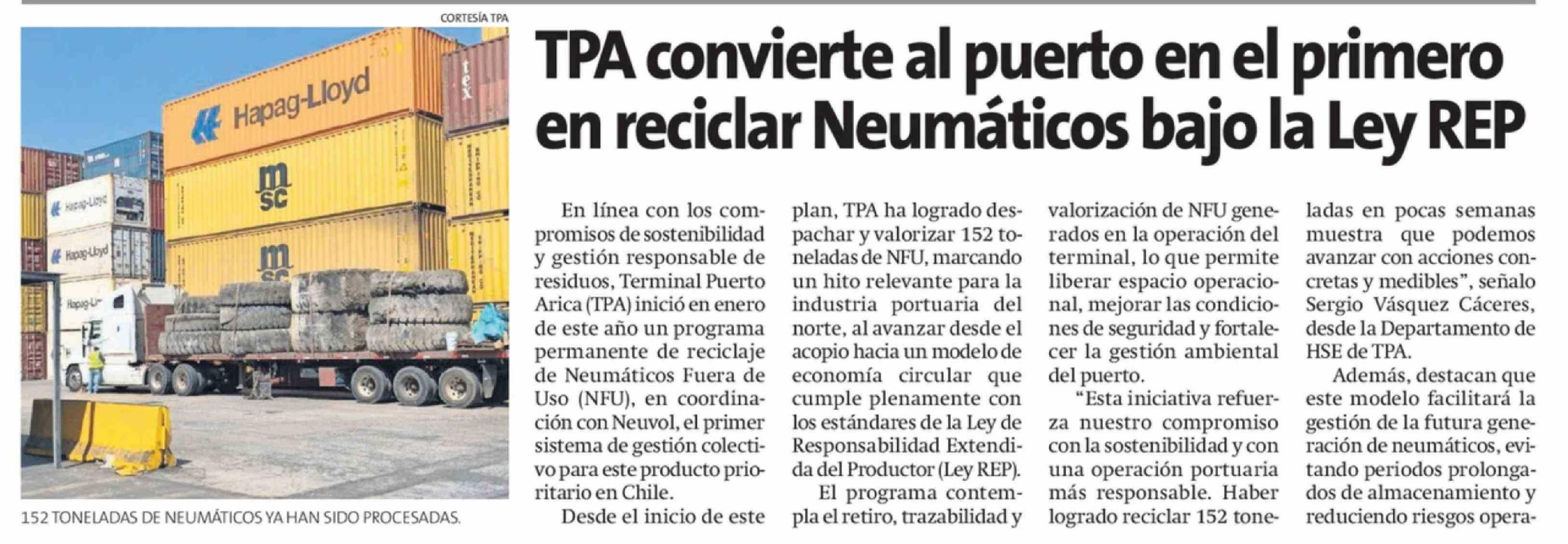 Título: TPA convierte al puerto en el primero en reciclar Neumáticos bajo la Ley REP