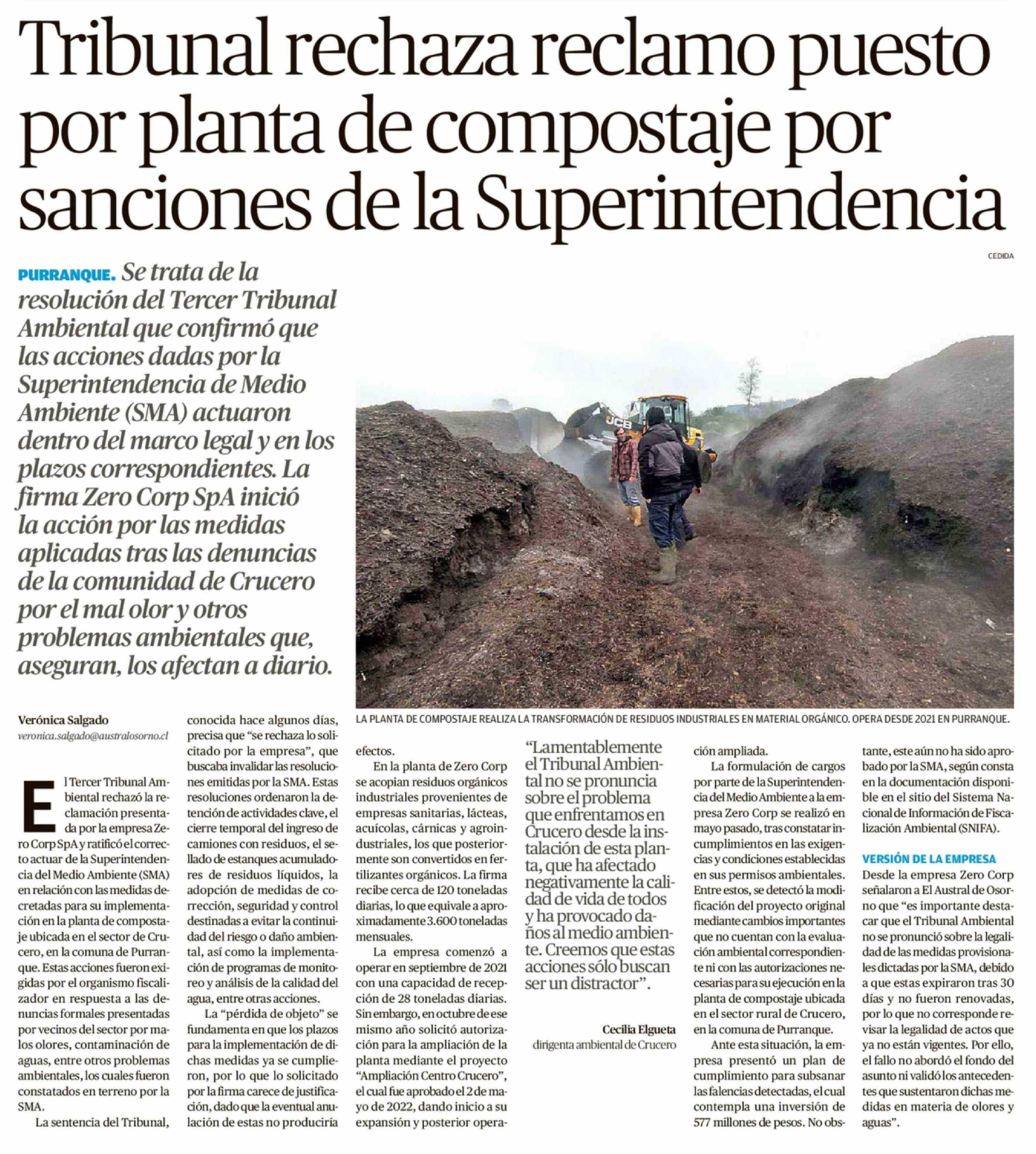 Título: Tribunal rechaza reclamo puesto por planta de compostaje por sanciones de la Superintendencia