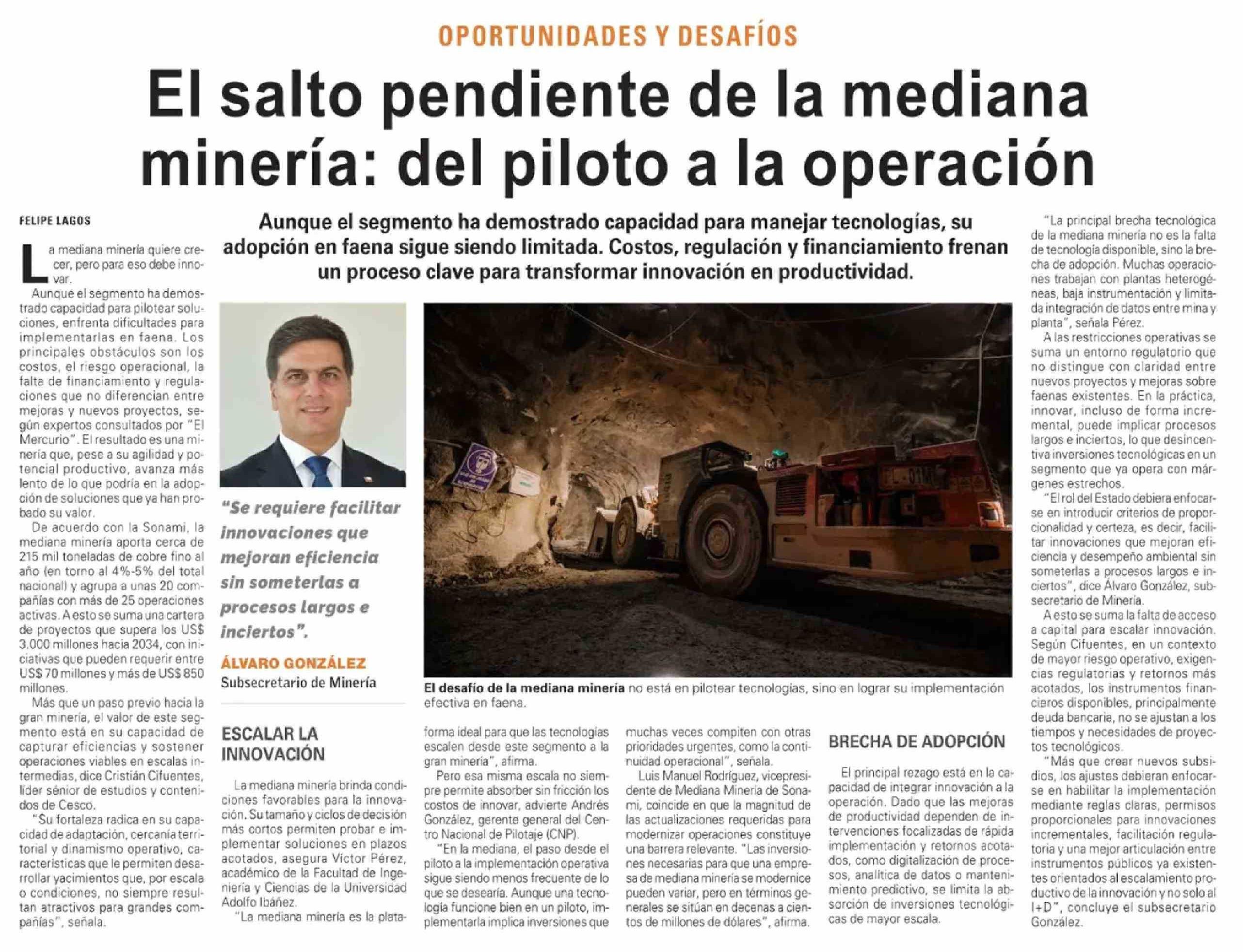 El salto pendiente de la mediana minería: del piloto a la operación 22-04-2026 El Mercurio |