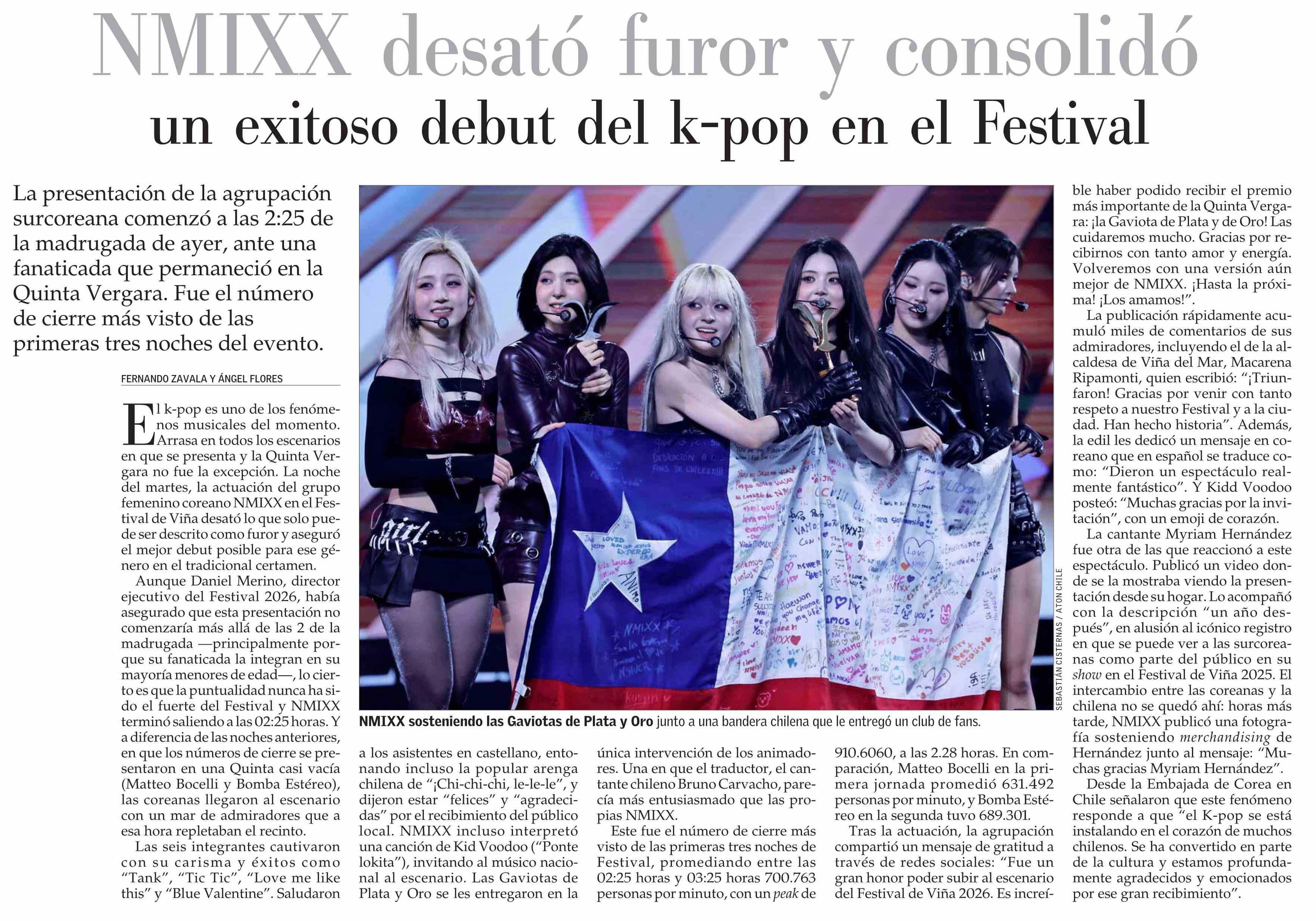 NMIXX desató furor y consolidó un exitoso debut del k-pop en el Festival 26-02-2026 El Mercurio |
