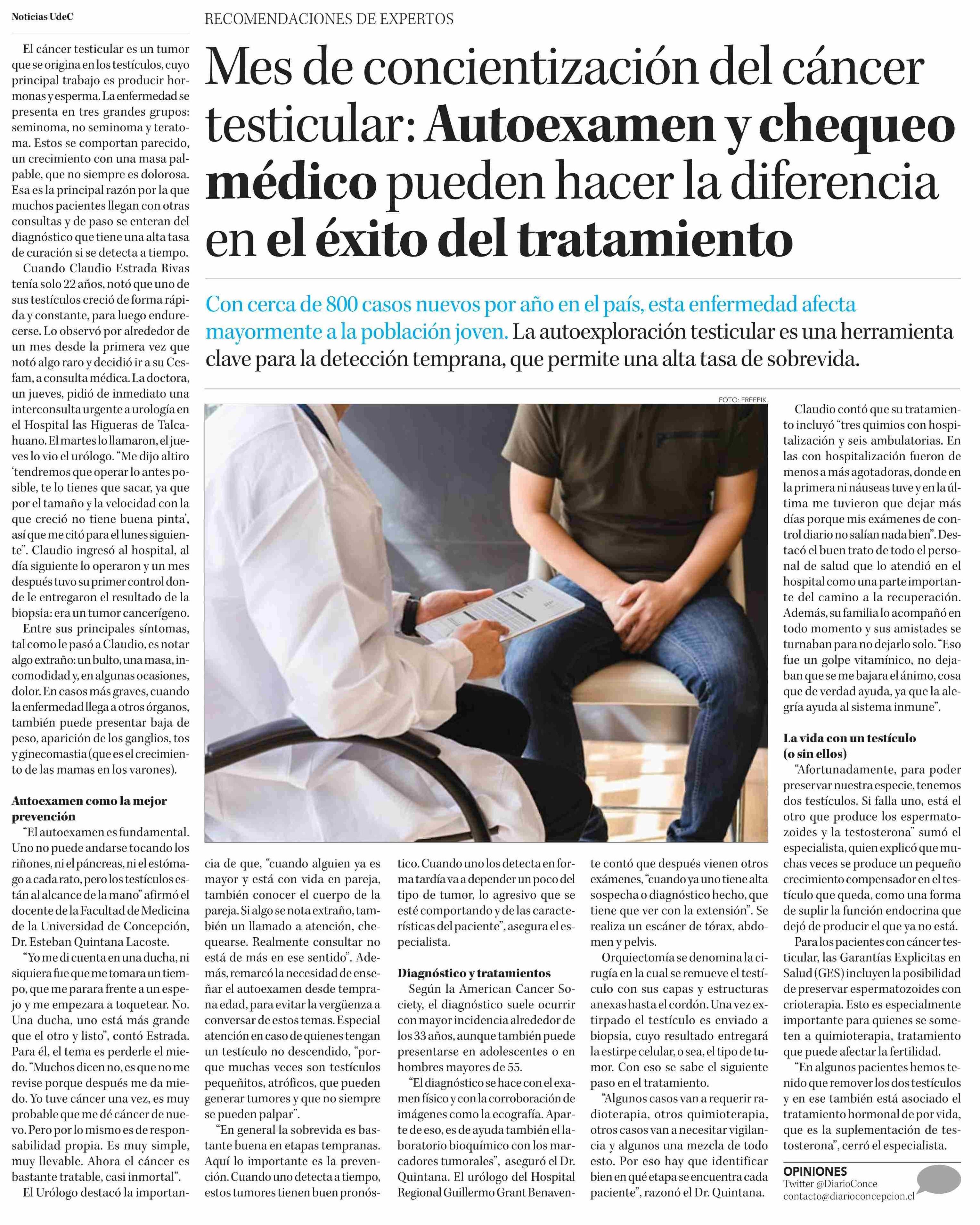 Mes de concientización del cáncer testicular: Autoexamen y chequeo médico pueden hacer la diferencia en el éxito del tratamiento 07-04-2025 Diario Concepción |