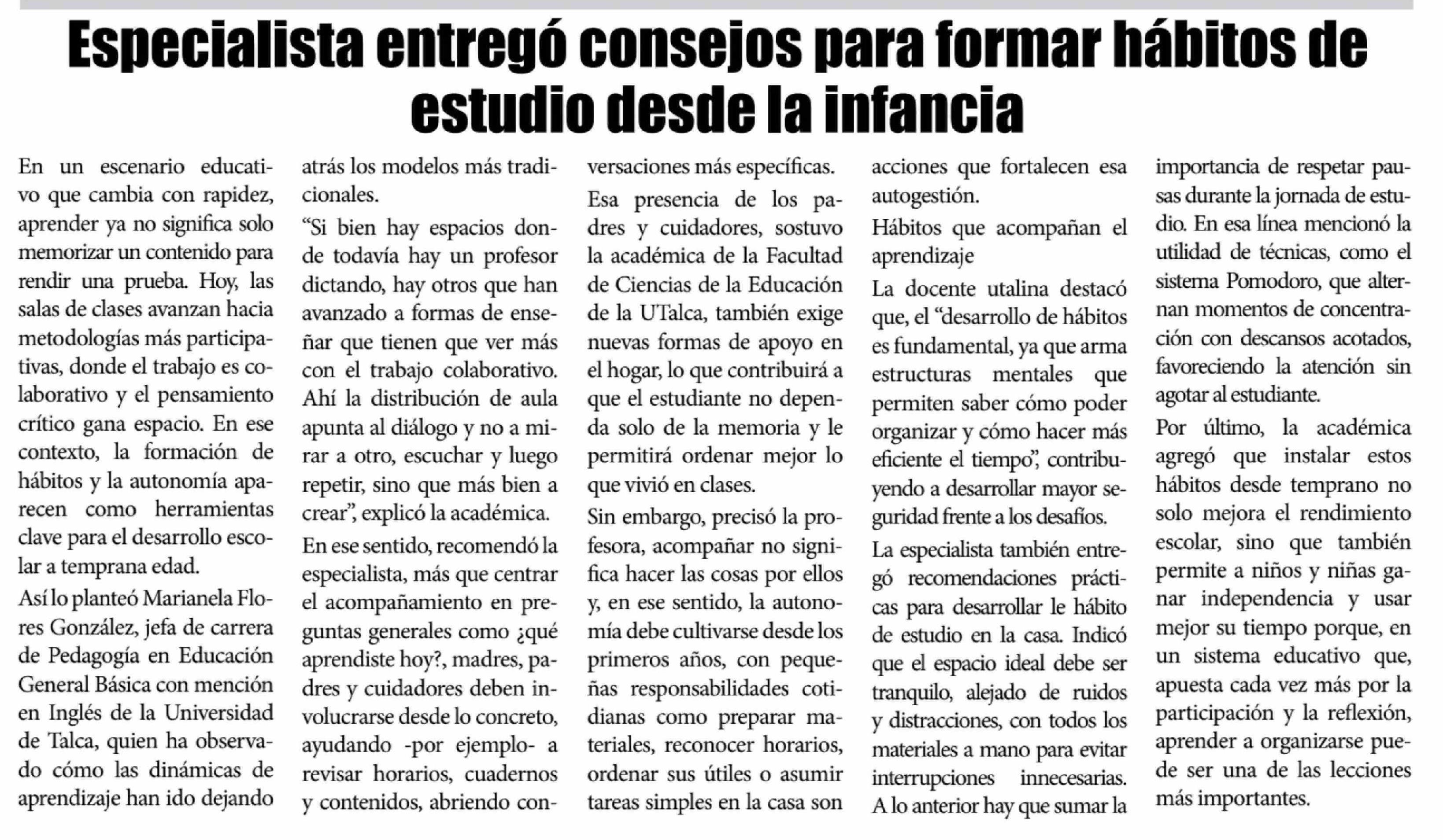 Título: Especialista entregó consejos para formar hábitos de estudio desde la infancia
