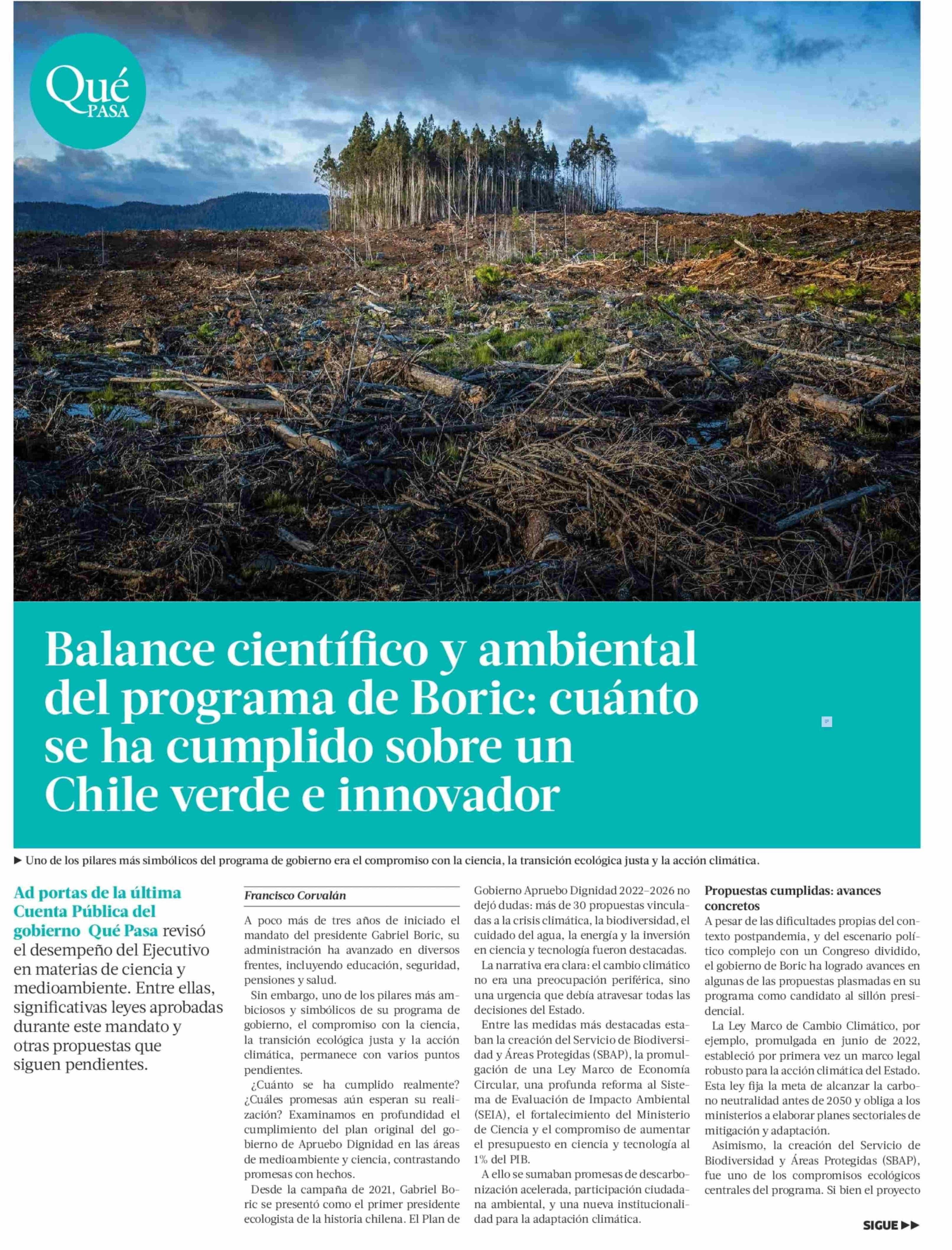 | Título: | Balance científico y ambiental del programa de Boric: cuánto se ha cumplido sobre un Chile verde e innovador |